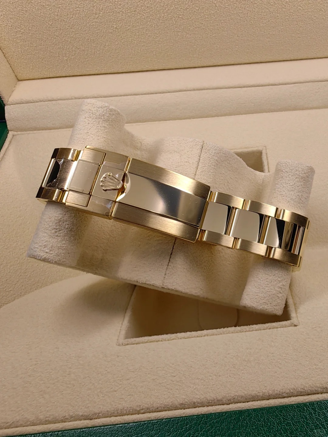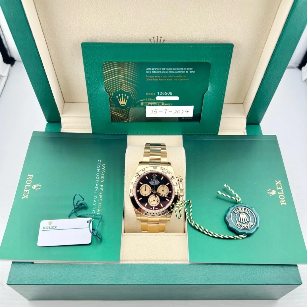 The Oyster Perpetual Cosmograph Daytona in 18 ct yellow gold with a mellow black and champagne dial and an Oyster bracelet with an engraved tachymeter on the 18-carat yellow gold bezel. -m126508-0002 40mm