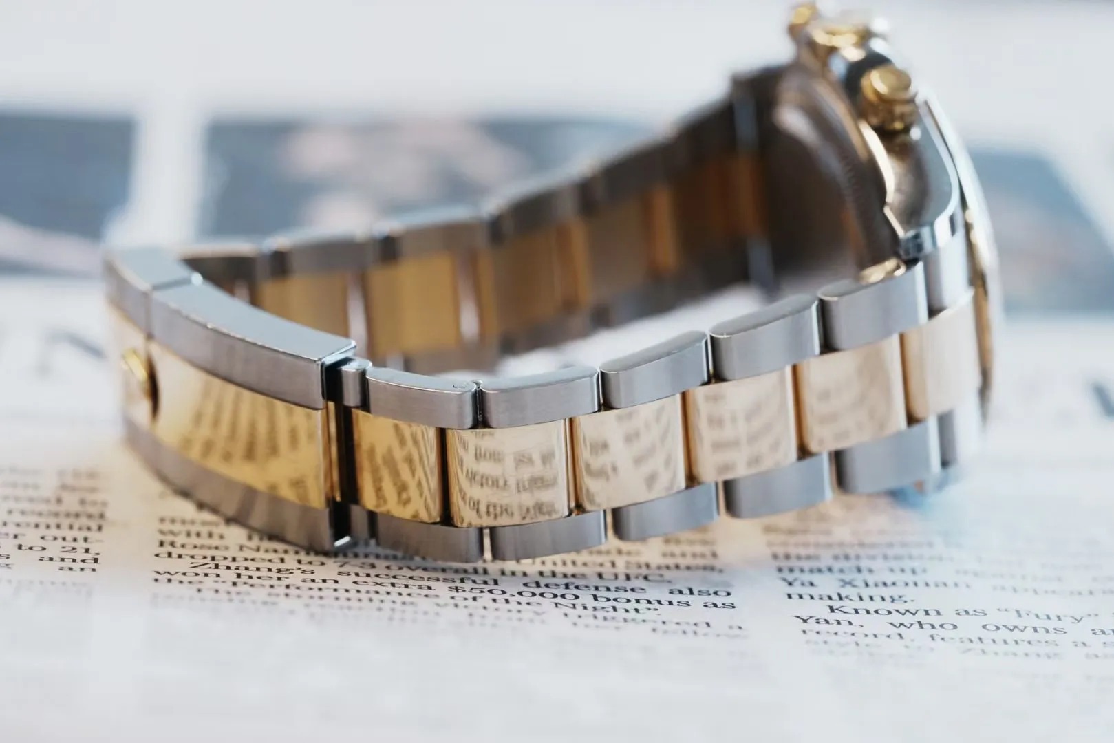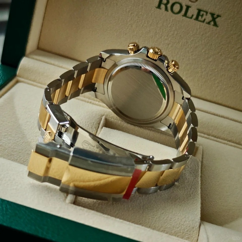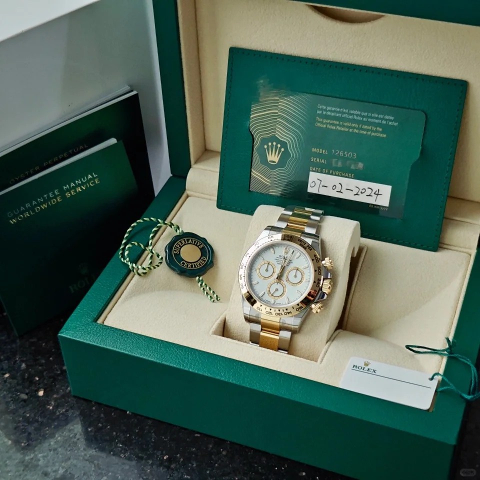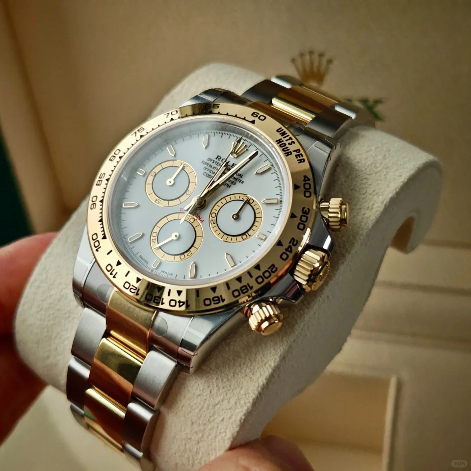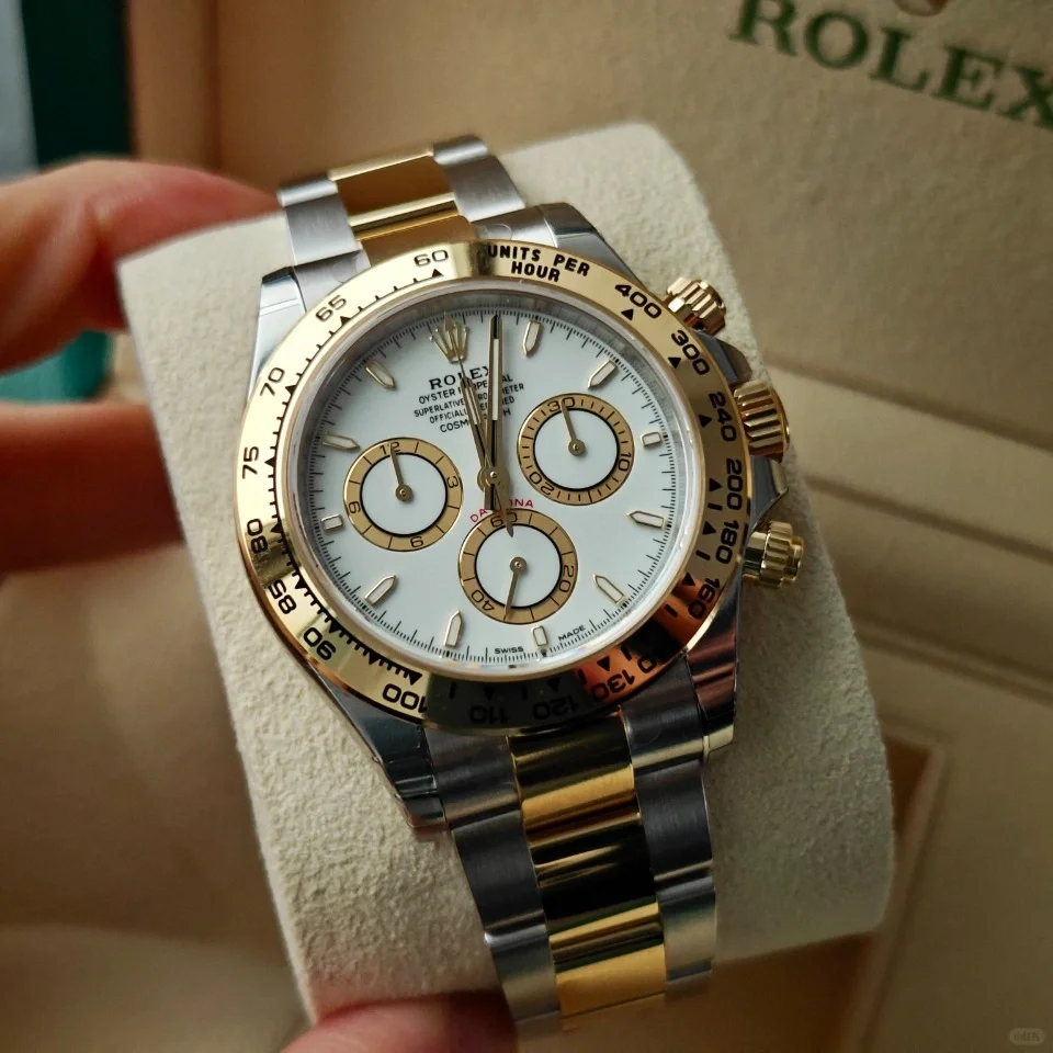 The Oyster Perpetual Cosmograph Daytona is available in yellow gold and Oystersteel with a white dial and contrasting counters. The watch is fitted with an Oyster bracelet with a tachymeter engraved on a yellow gold bezel. -m126503-0001 40mm