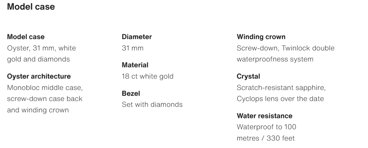 • The Oyster Perpetual Datejust 31 is available in 18 ct white gold with a bright blue dial and a President bracelet. -m278289rbr-0023