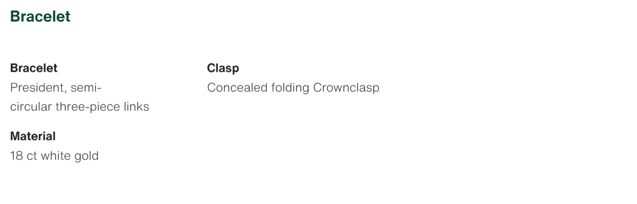 • The Oyster Perpetual Datejust 31 is available in 18 ct white gold with a dark grey dial and a President bracelet. -m278289rbr-0014