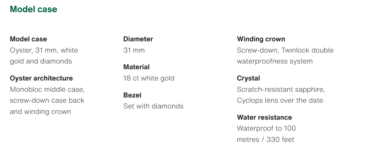 The Oyster Perpetual Datejust 31 is available in 18 ct white gold with a diamond-set dark grey dial and a President bracelet. -m278289rbr-0006