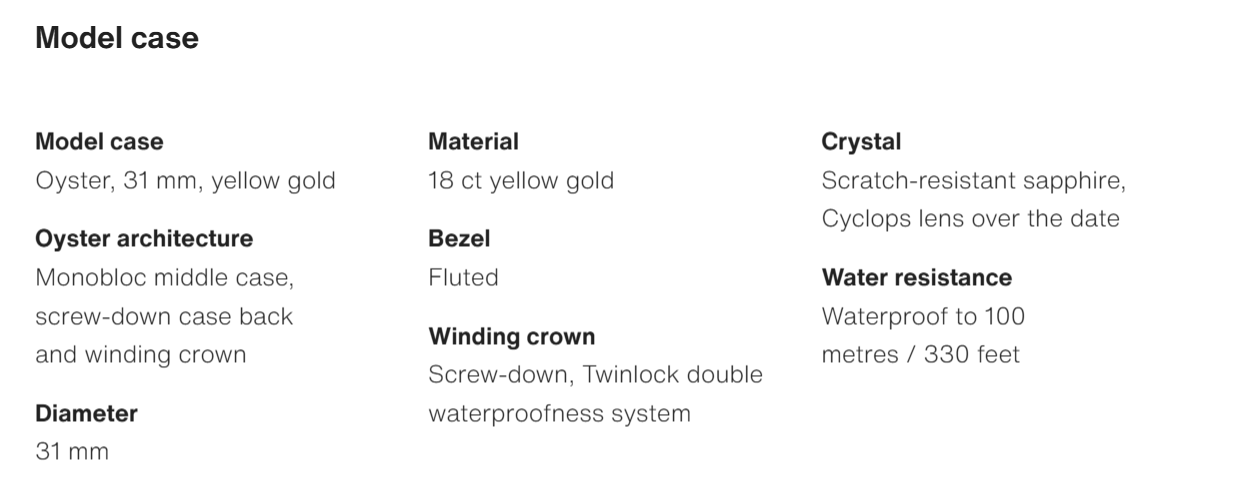 The Oyster Perpetual Datejust 31 is available in 18 ct yellow gold with a white dial and a President bracelet. -m278278-0020