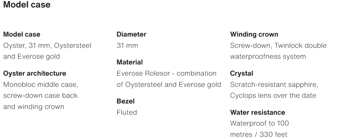 • The Oyster Perpetual Datejust 31 is available in Everose gold and Oystersteel with a slate-grey dial and a Jubilee bracelet. -m278271-0018