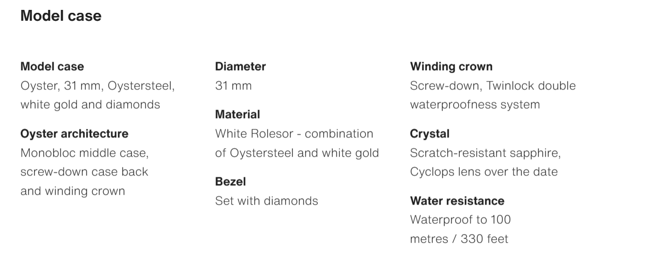 • The Oyster Perpetual Datejust 31 is available in white gold and Oysteel. with a diamond-set silver dial and an Oyster bracelet. -m278384rbr-0033