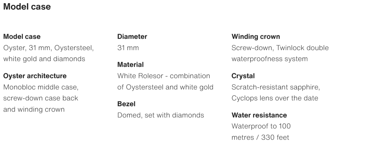 The Oyster Perpetual Datejust 31 is available in white gold and Oystersteel. with a diamond-set white mother-of-pearl dial and an Oyster bracelet. -m278344rbr-0005