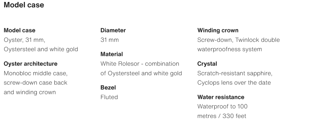 The Oyster Perpetual Datejust 31 is available in white gold and Oystersteel with a glossy black dial and an Oyster bracelet. -m278274-0001