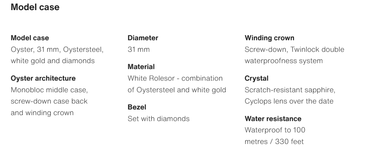 The Oyster Perpetual Datejust 31 is available in white gold and Oystersteel with a glossy black dial and an Oyster bracelet. -m278384rbr-0001