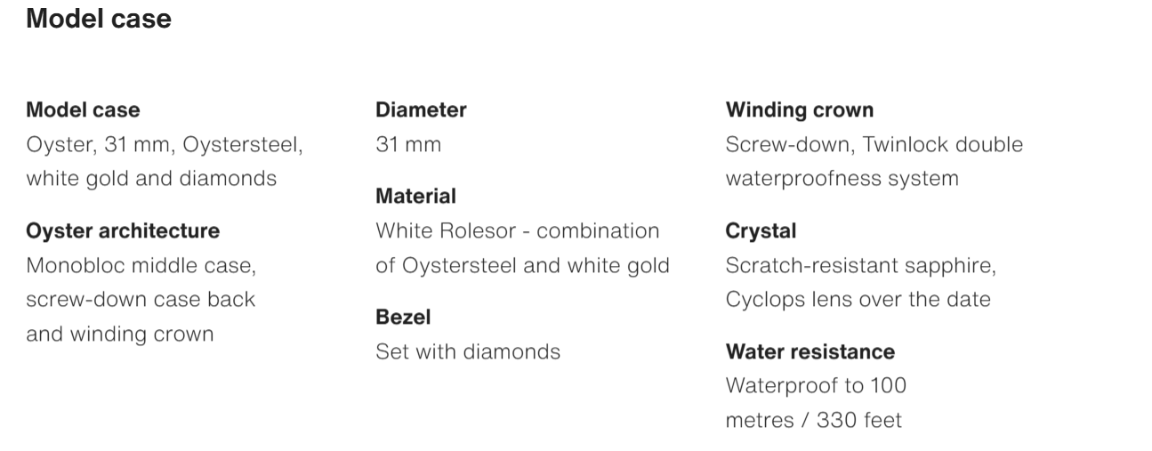 • The Oyster Perpetual Datejust 31 is available in white gold and Oystersteel with a pink diamond-set dial and an Oyster bracelet. -m278384rbr-0027