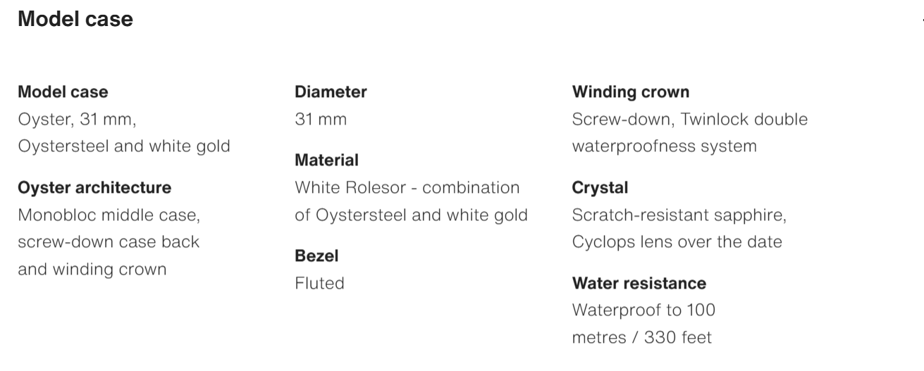 • The Oyster Perpetual Datejust 31 is available in white gold and Oystersteel with a silver dial and Oyster bracelet. -m278274-0011