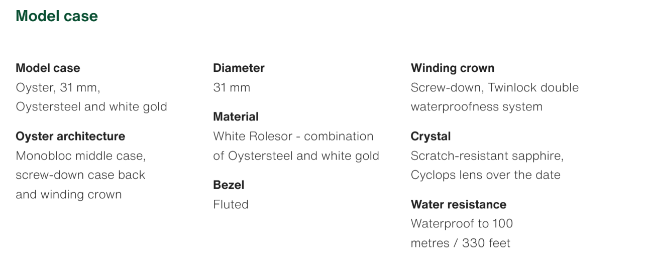 • The Oyster Perpetual Datejust 31 is available in white gold and Oystersteel with a white dial and Oyster bracelet. -m278274-0009