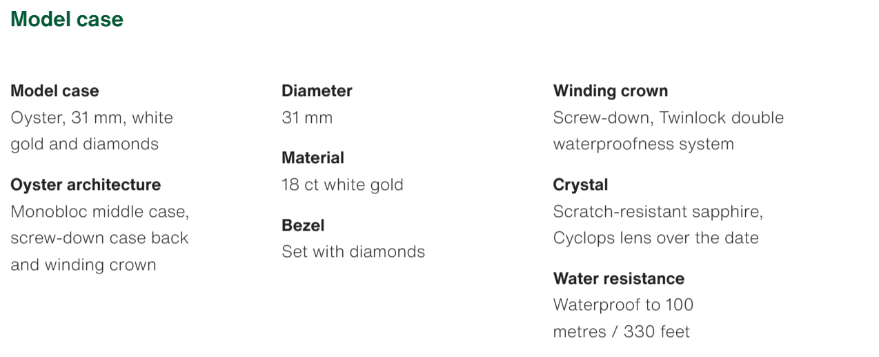 The Oyster Perpetual Datejust 31 is in 18 ct white gold with a silver-toned diamond-set dial and a President bracelet. -m278289rbr-0021