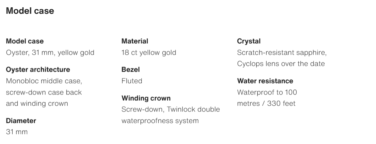 The Oyster Perpetual Datejust 31 is in 18 ct yellow gold. with a diamond-set black mother-of-pearl dial and a President bracelet. -m278278-0038