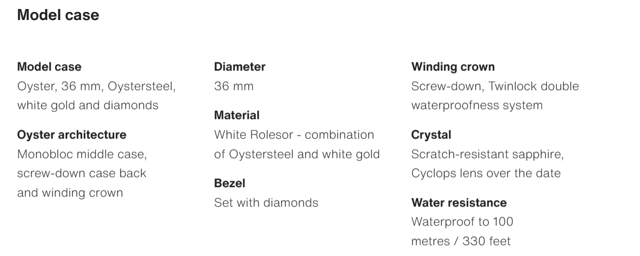 • The Oyster Perpetual Datejust 36 is available in white gold and Oystersteel with a diamond-set silver dial and an Oyster bracelet. -m126284rbr-0022