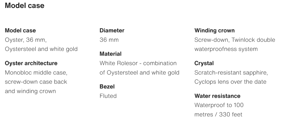 The Oyster Perpetual Datejust 36 is available in white gold and Oystersteel with a glossy black dial and an Oyster bracelet. -m126234-0016