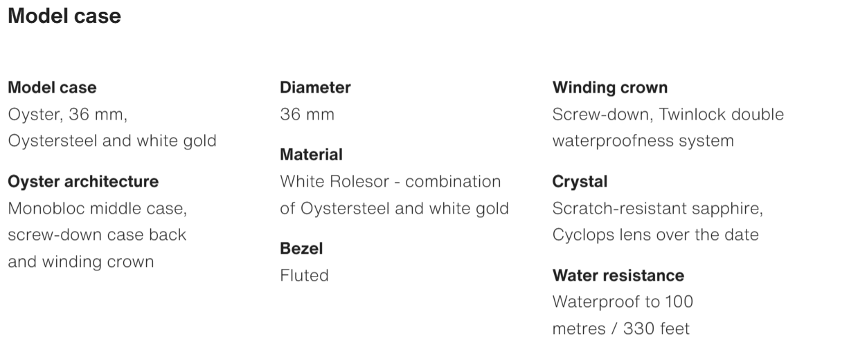 • The Oyster Perpetual Datejust 36 is available in white gold and Oystersteel with a slate-grey dial and an Oyster bracelet. -m126234-0046