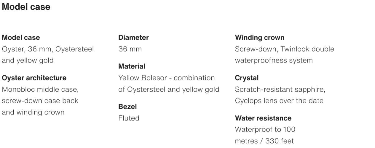 • The Oyster Perpetual Datejust 36 is available in yellow gold and Oysteel. with a champagne-coloured dial and an Oyster bracelet. -m126233-0016