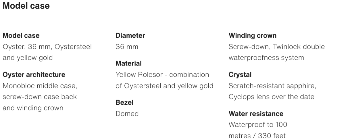 • The Oyster Perpetual Datejust 36 is available in yellow gold and Oystersteel with a champagne-coloured diamond-set dial and a Jubilee bracelet. -m126203-0017