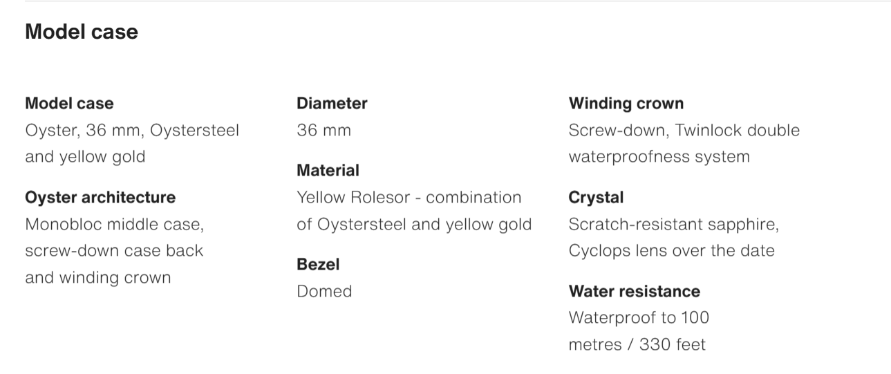 • The Oyster Perpetual Datejust 36 is available in yellow gold and Oystersteel with a white dial and Oyster bracelet. -m126203-0020