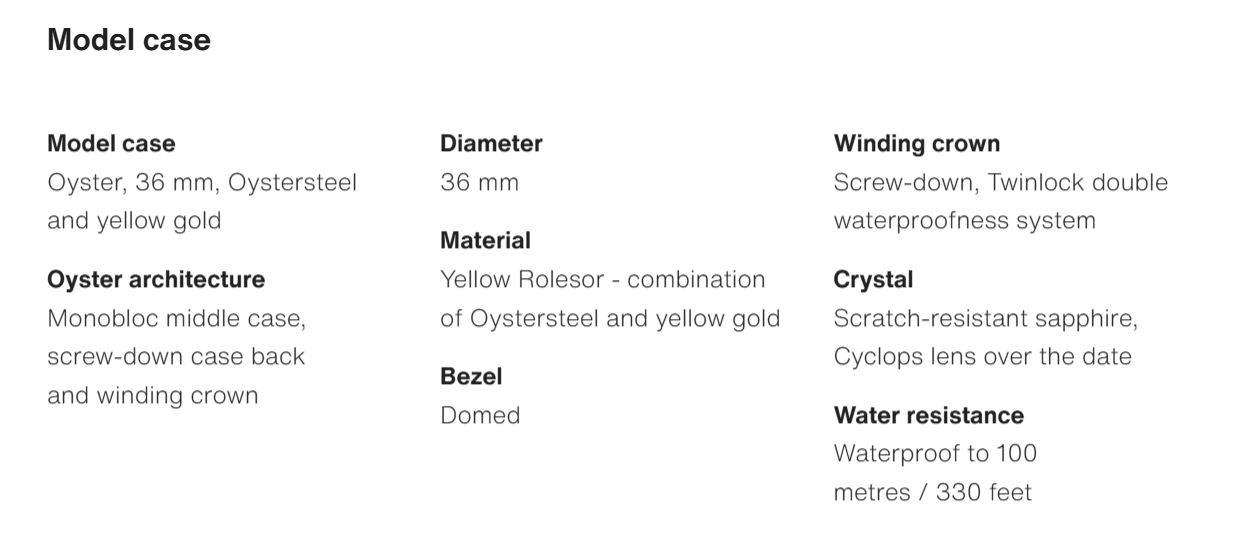 • The Oyster Perpetual Datejust 36 is available in yellow gold and Oystersteel with a white dial and Oyster bracelet. -m126203-0030