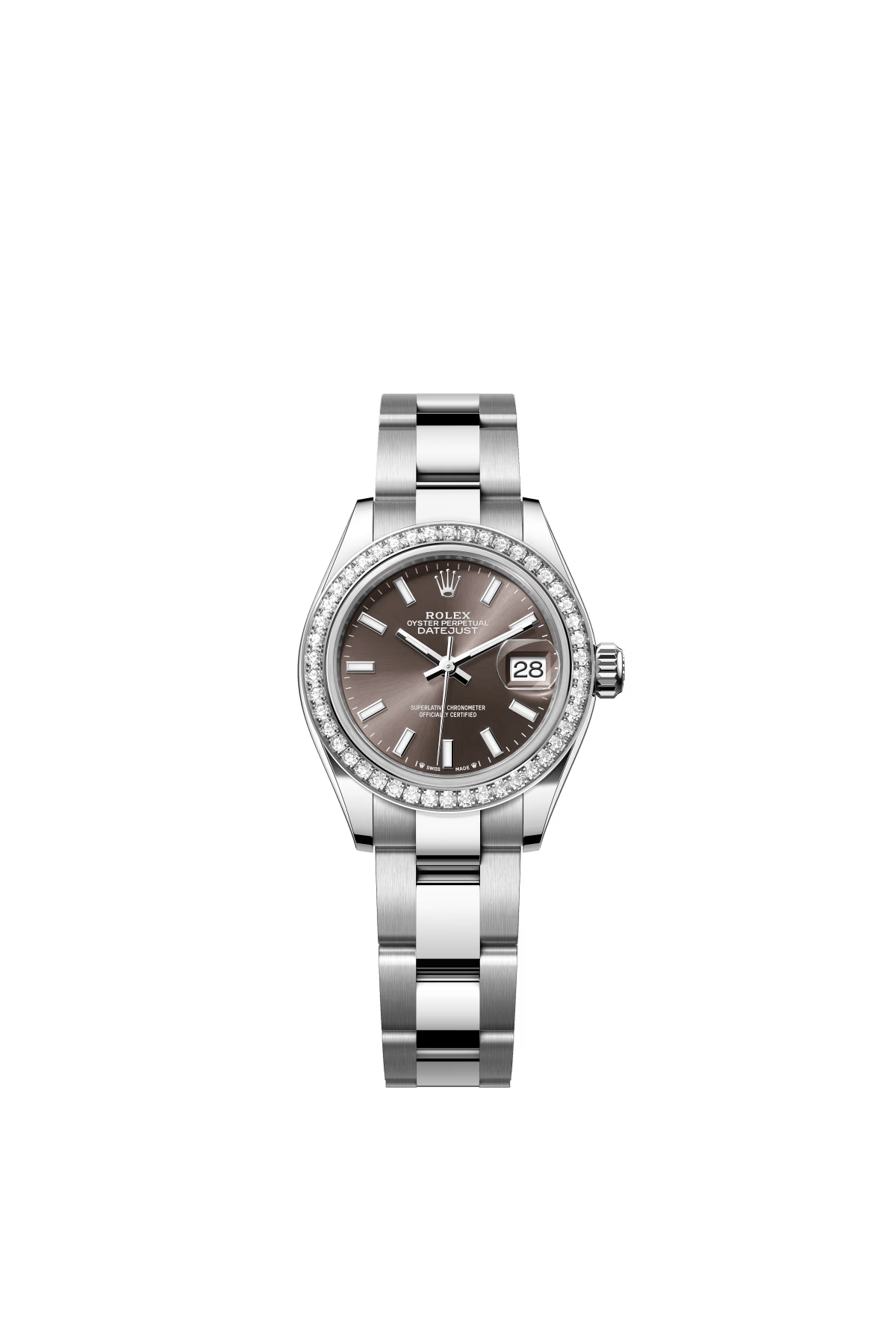 The Oyster Perpetual Lady-Datejust in white gold and Oystersteel with a dark grey dial and Oyster bracelet. -m279384rbr-0014 28mm
