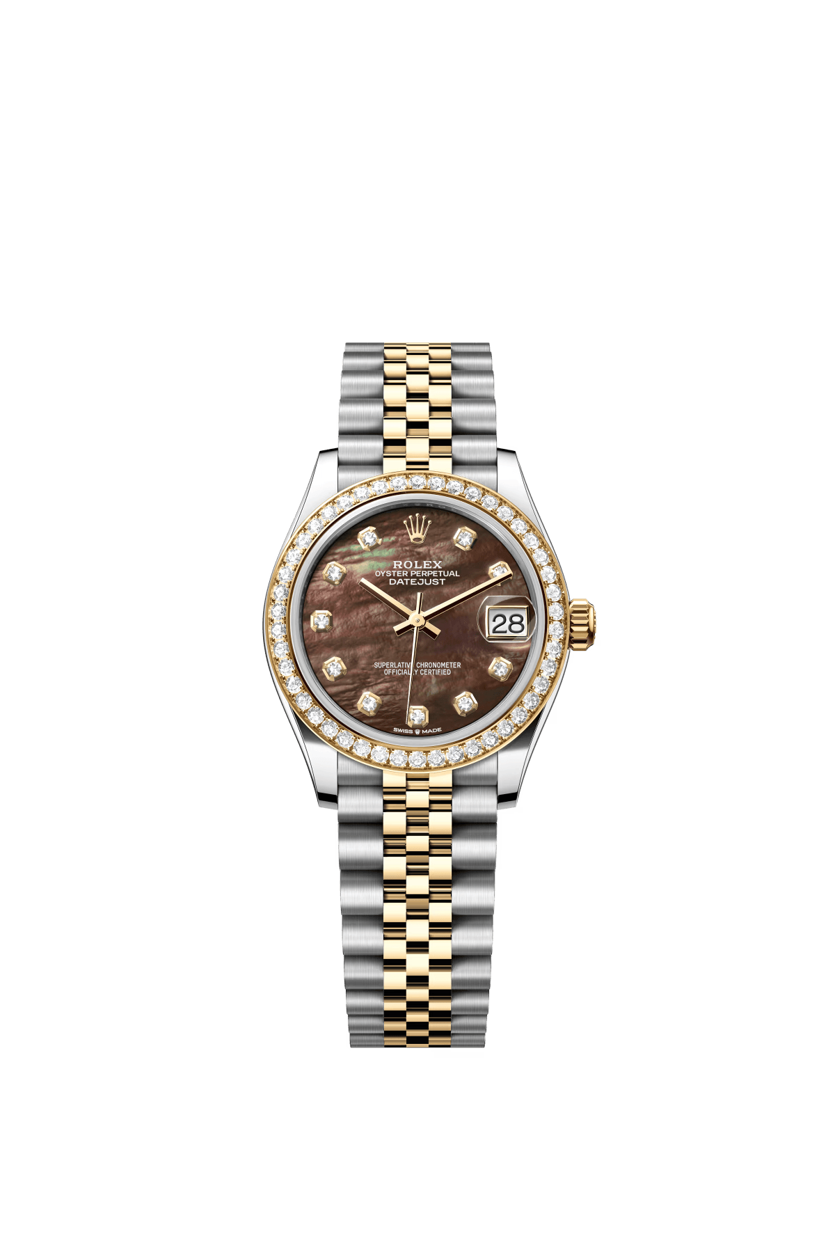 The Oyster Perpetual Datejust 31 in yellow gold and Oystersteel with a diamond-set black mother-of-pearl dial and a Jubilee bracelet. -m278383rbr-0024
