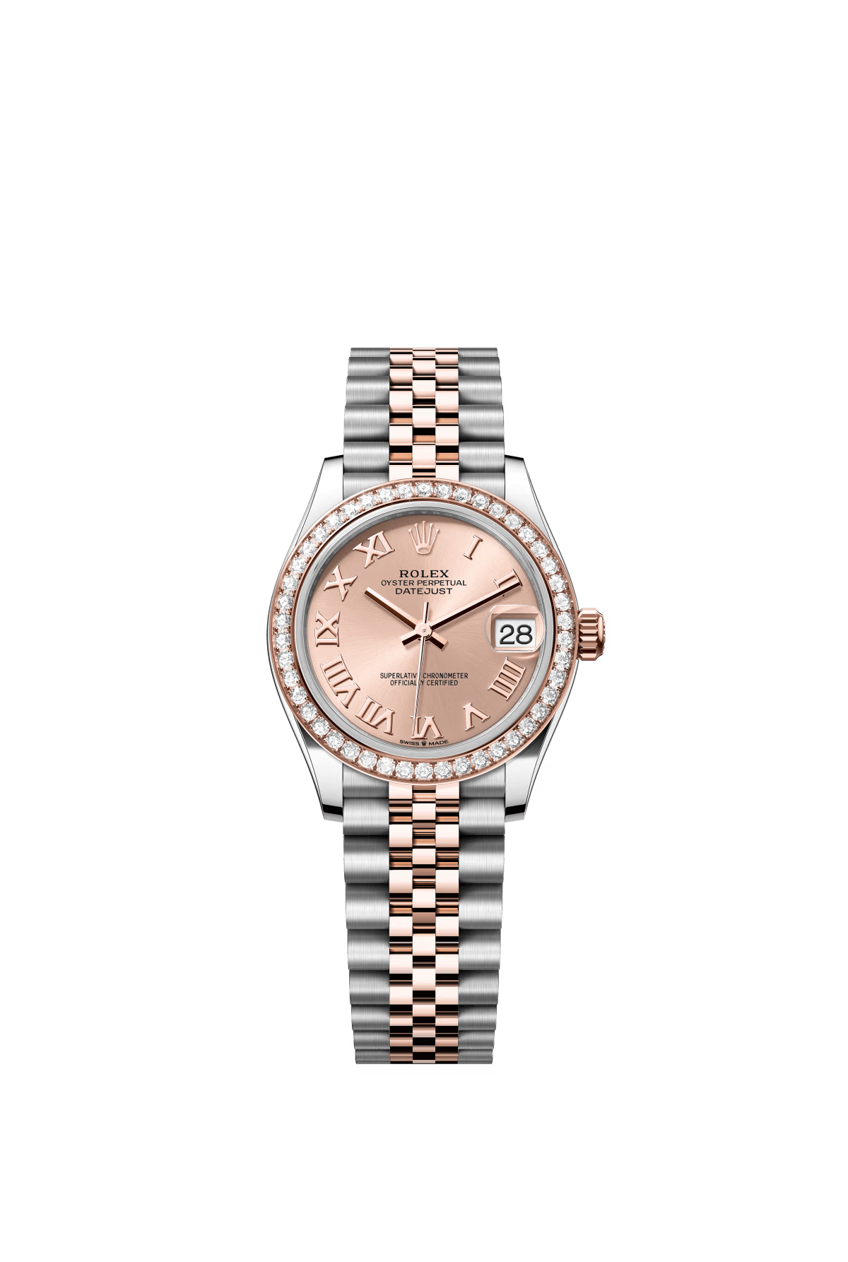 The Oyster Perpetual Datejust 31 is available in Everose gold and Oystersteel with a rose gold dial and a Jubilee bracelet. -m278381rbr-0002