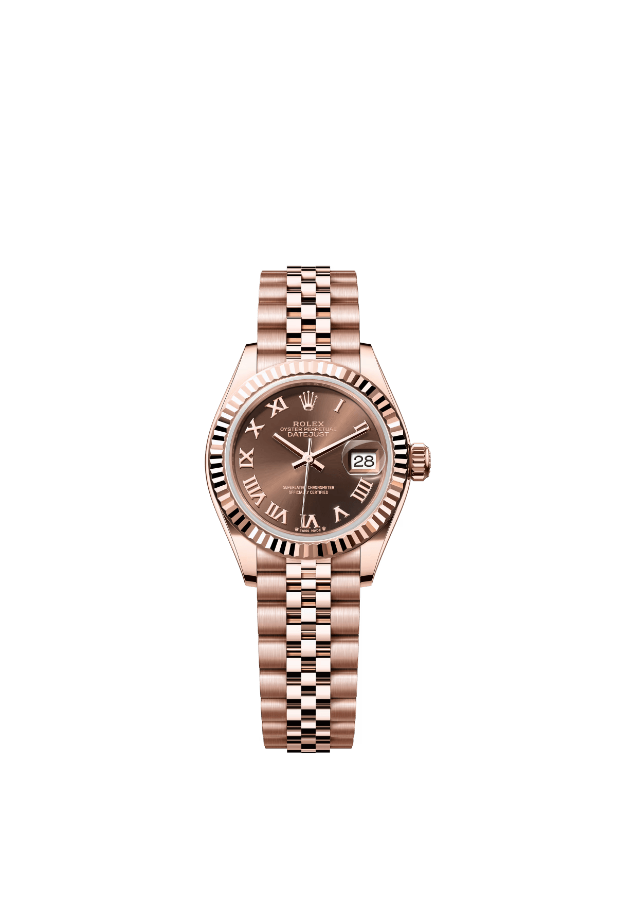 The Oyster Perpetual Lady-Datejust in 18-carat Everose gold with a chocolate-coloured dial and a Jubilee bracelet. -m279175-0015 28mm