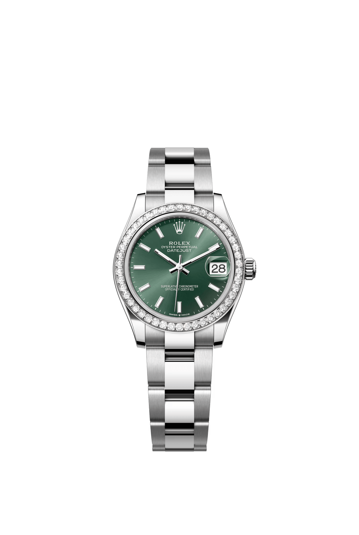 The Oyster Perpetual Datejust 31 is available in white gold and Oystersteel with a mint green dial and an Oyster bracelet. -m278384rbr-0021