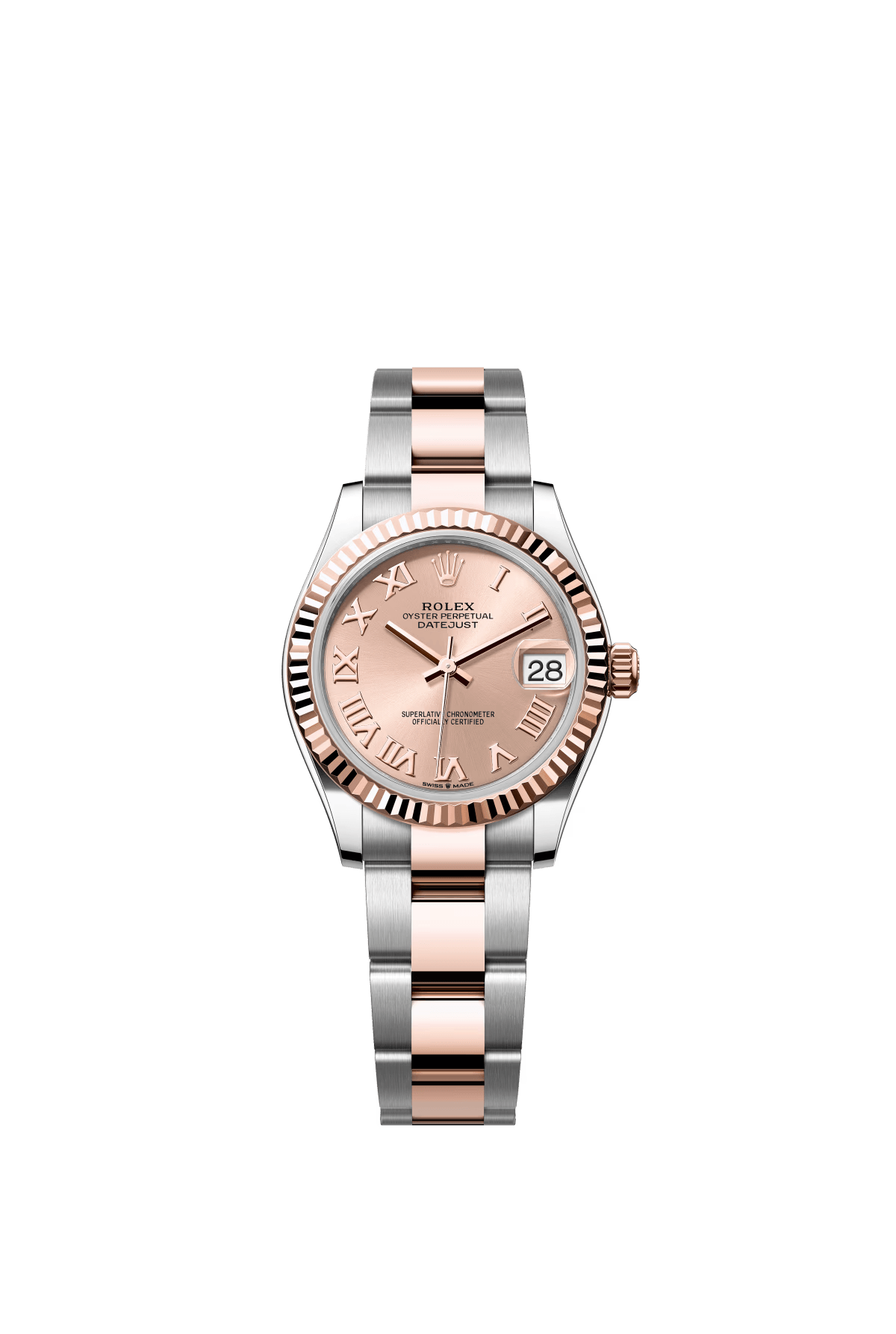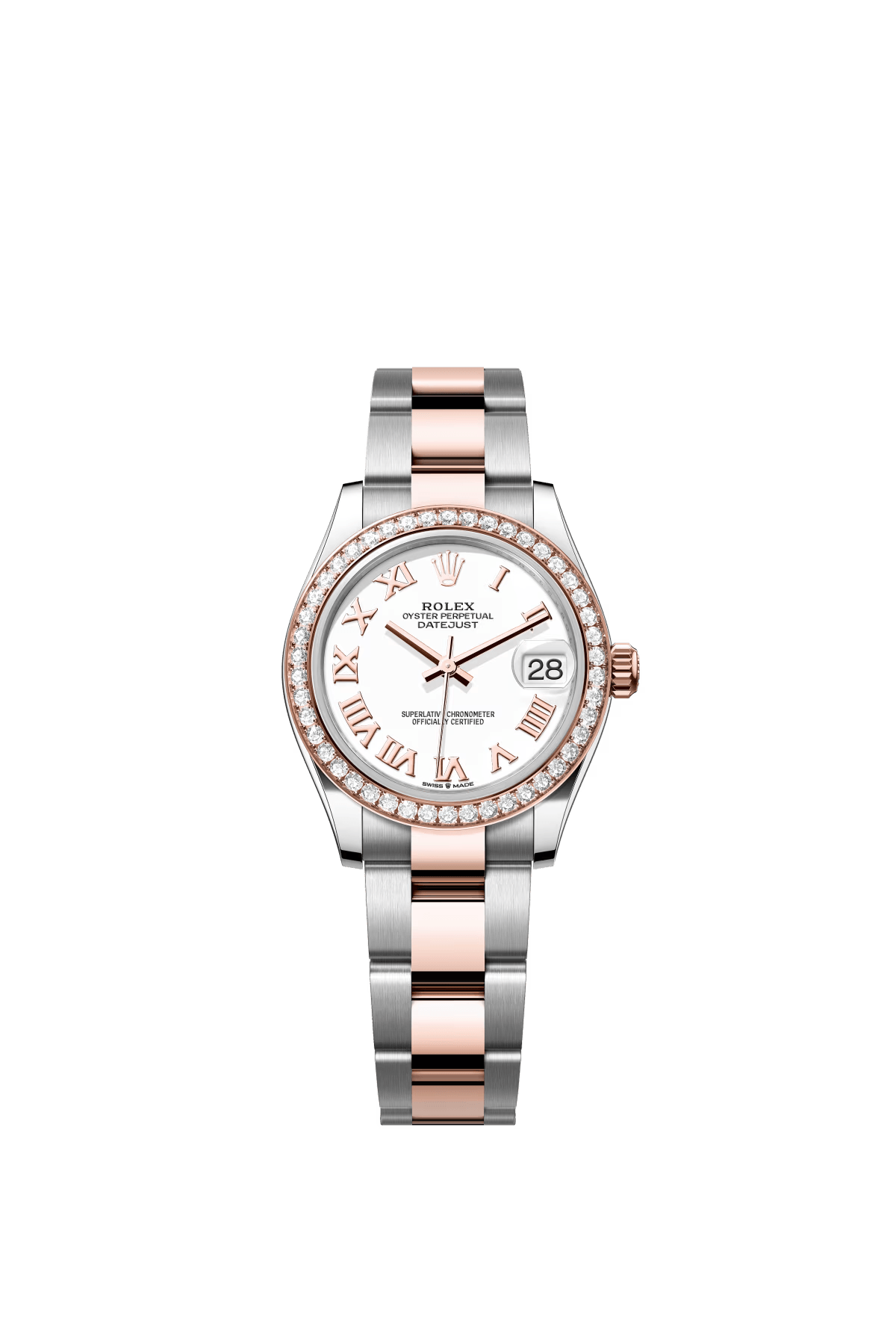 The Oyster Perpetual Datejust 31 is available in Everose gold and Oystersteel with a white dial and Oyster bracelet. -m278381rbr-0003