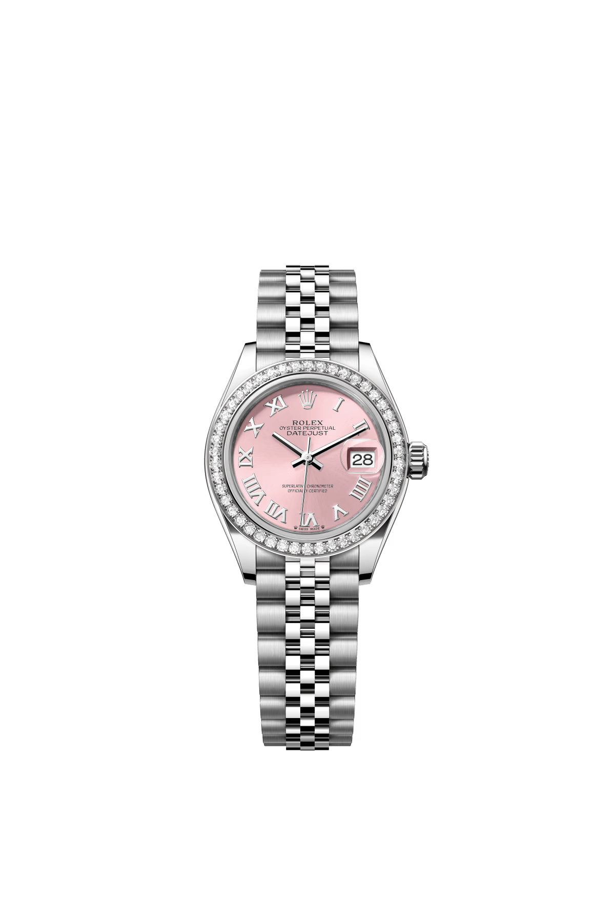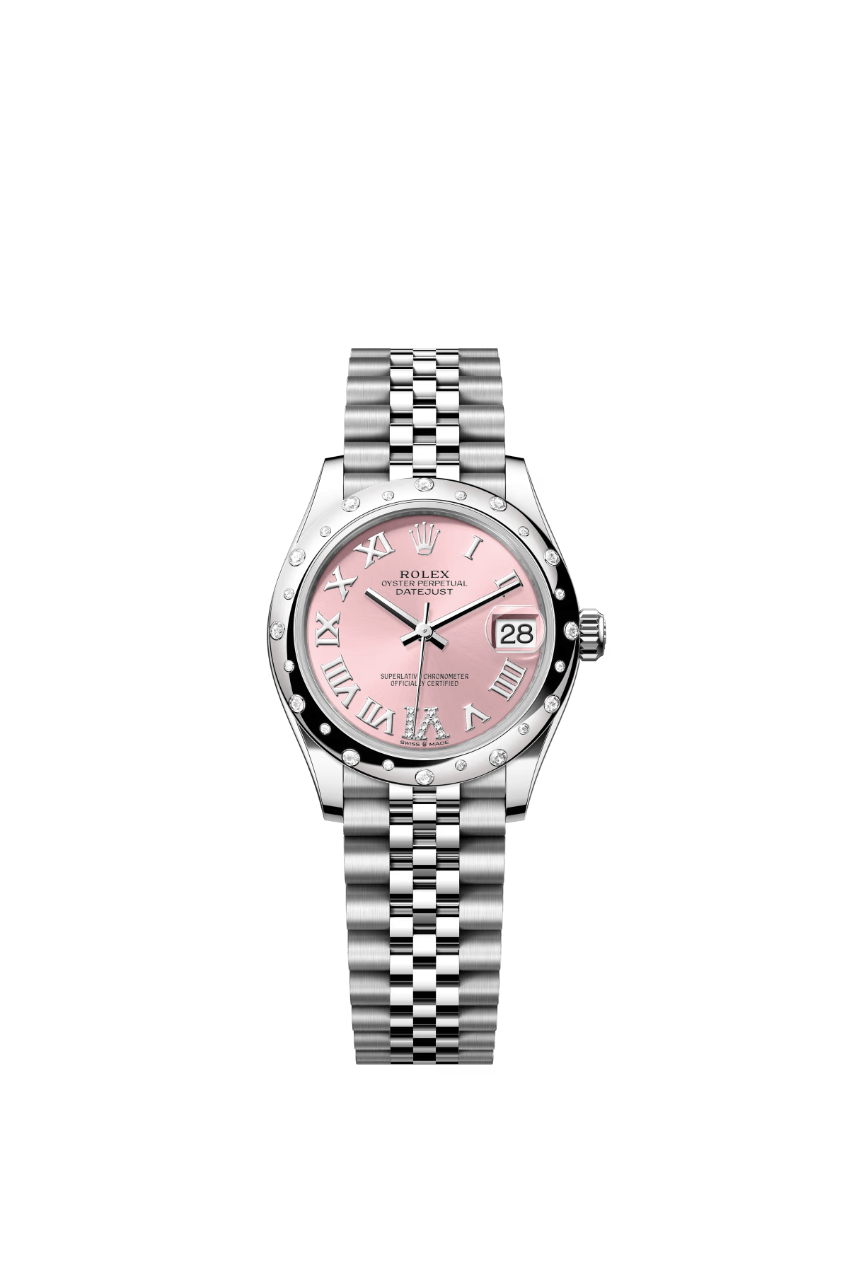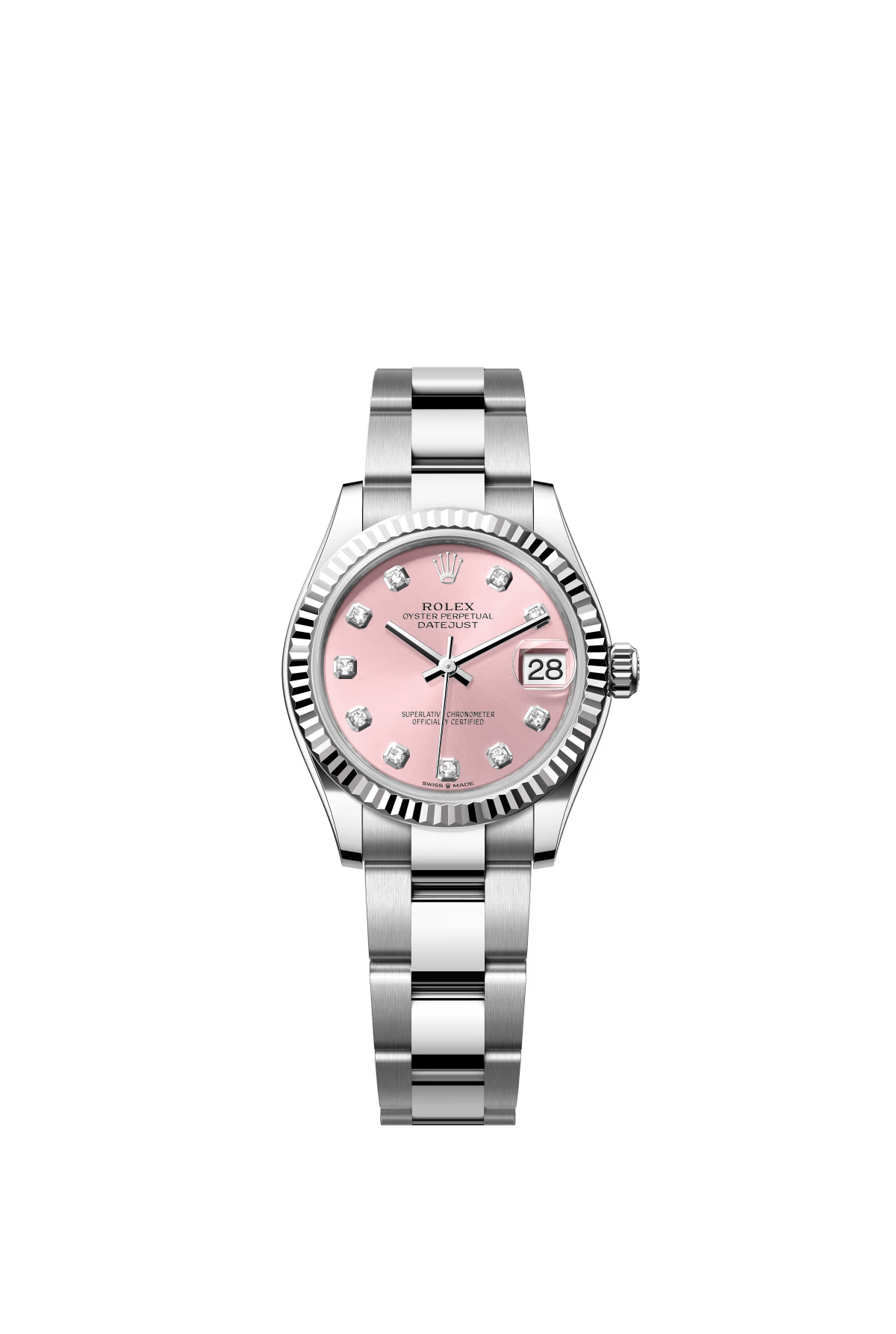 The Oyster Perpetual Datejust 31 is available in white gold and Oystersteel with a pink diamond-set dial and an Oyster bracelet. -m278274-0031