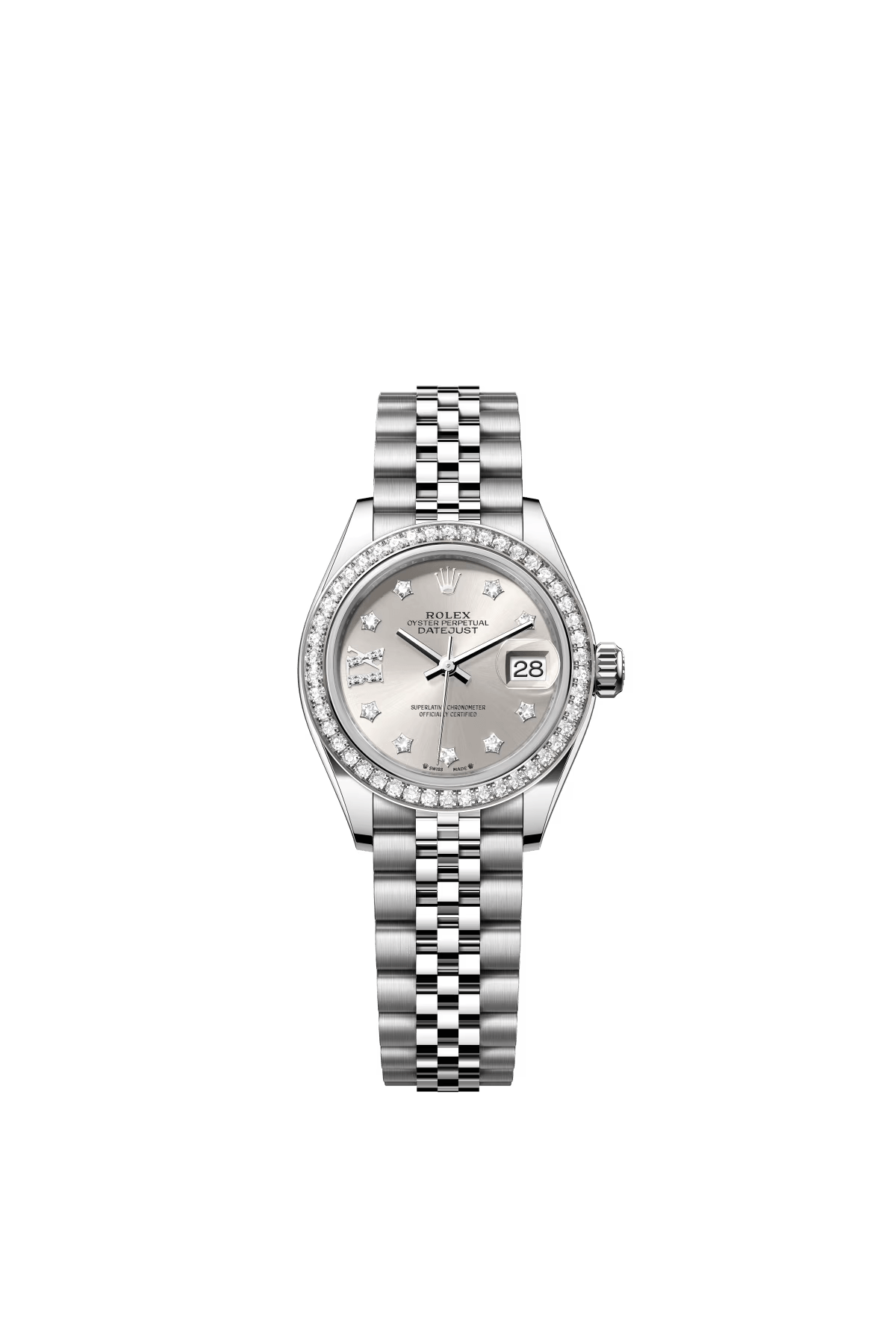 The Oyster Perpetual Lady-Datejust in white gold and Oystersteel with a silver-coloured diamond-set dial and a Jubilee bracelet. -m279384rbr-0021 28mm