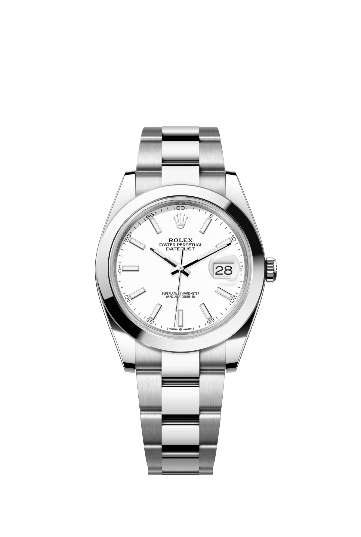 The Oyster Perpetual Datejust 41 is made in Oyster steel with a white dial and an Oyster bracelet. -m126300-0005