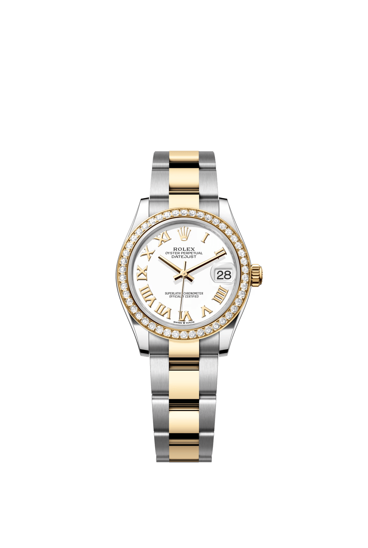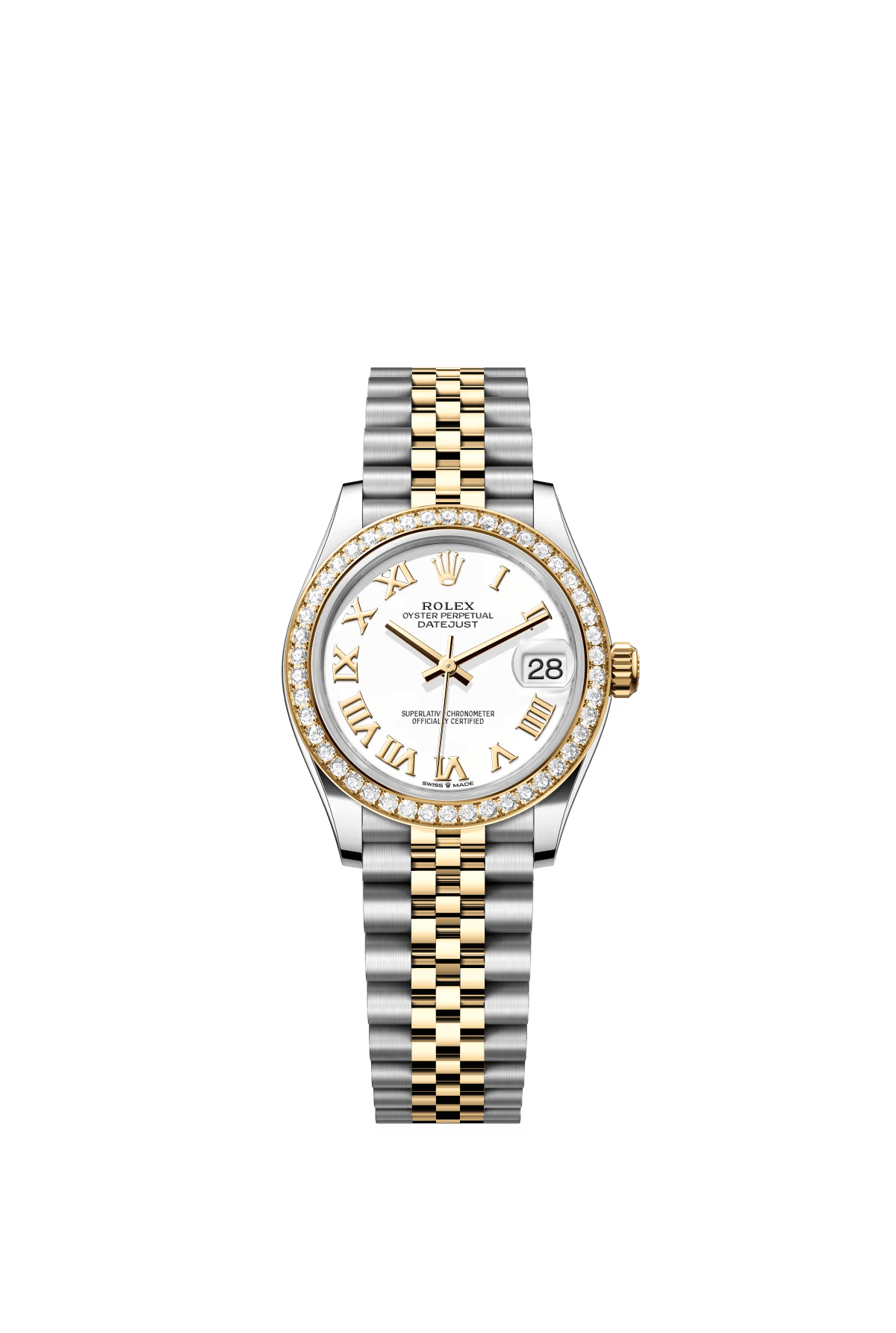 The Oyster Perpetual Datejust 31 is available in yellow gold and Oysteel. with a white dial and an Oyster bracelet. -m278383rbr-0001