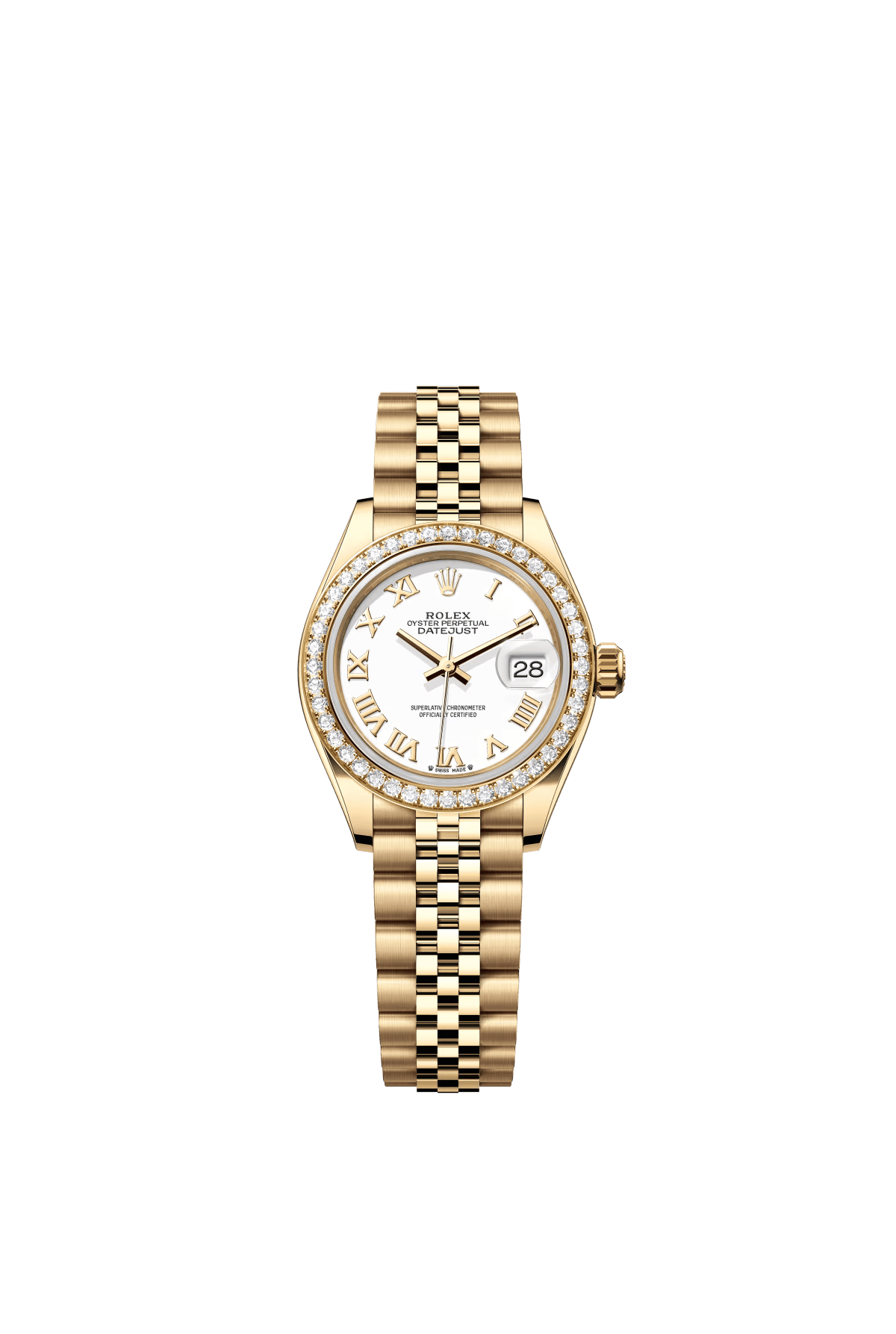 The Oyster Perpetual Lady-Datejust in 18 ct yellow gold with a white dial and Jubilee bracelet. -m279138rbr-0032 28mm
