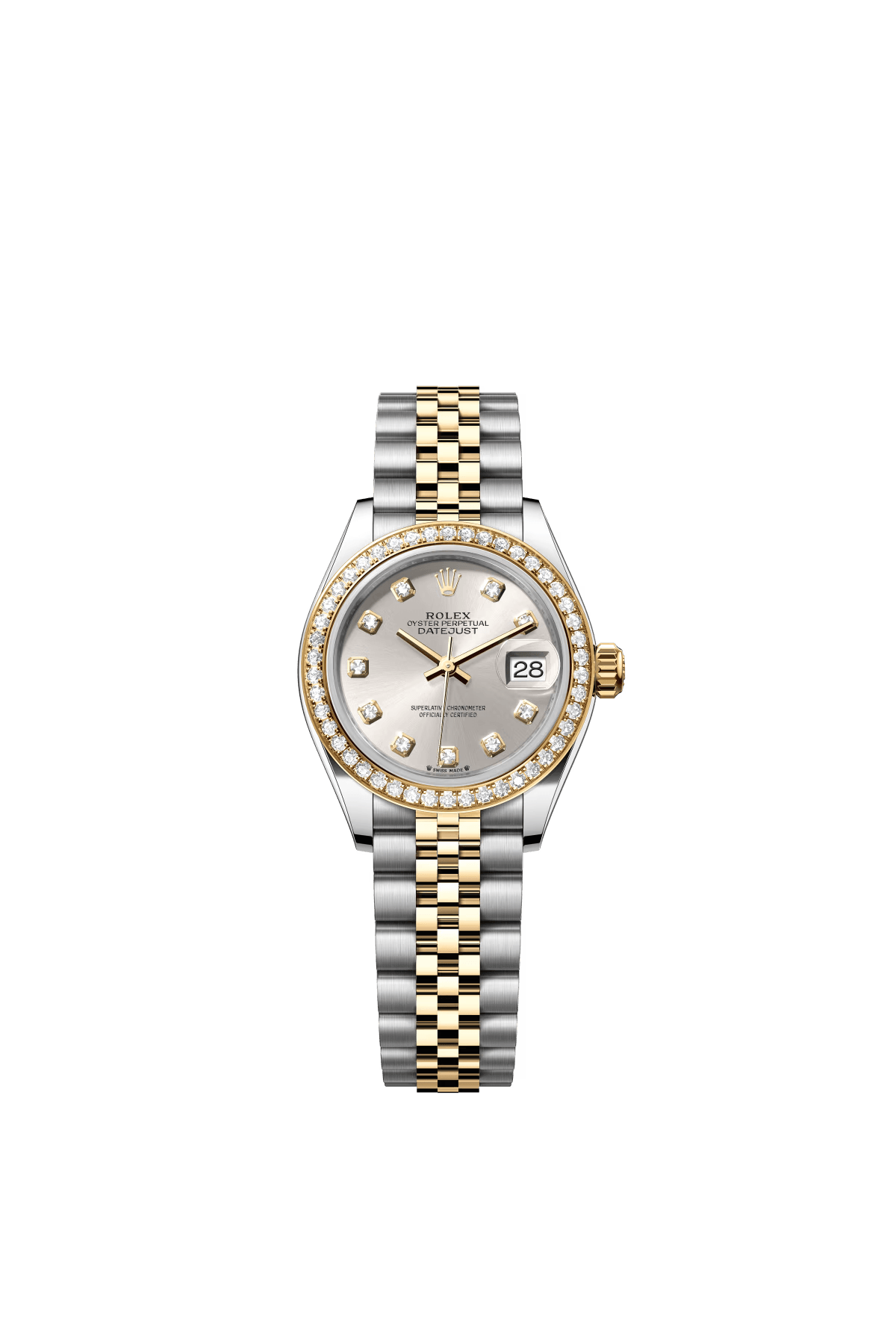 The Oyster Perpetual Lady-Datejust in yellow gold and Oystersteel with a silver-toned diamond-set dial and a Jubilee bracelet. -m279383rbr-0007 28mm