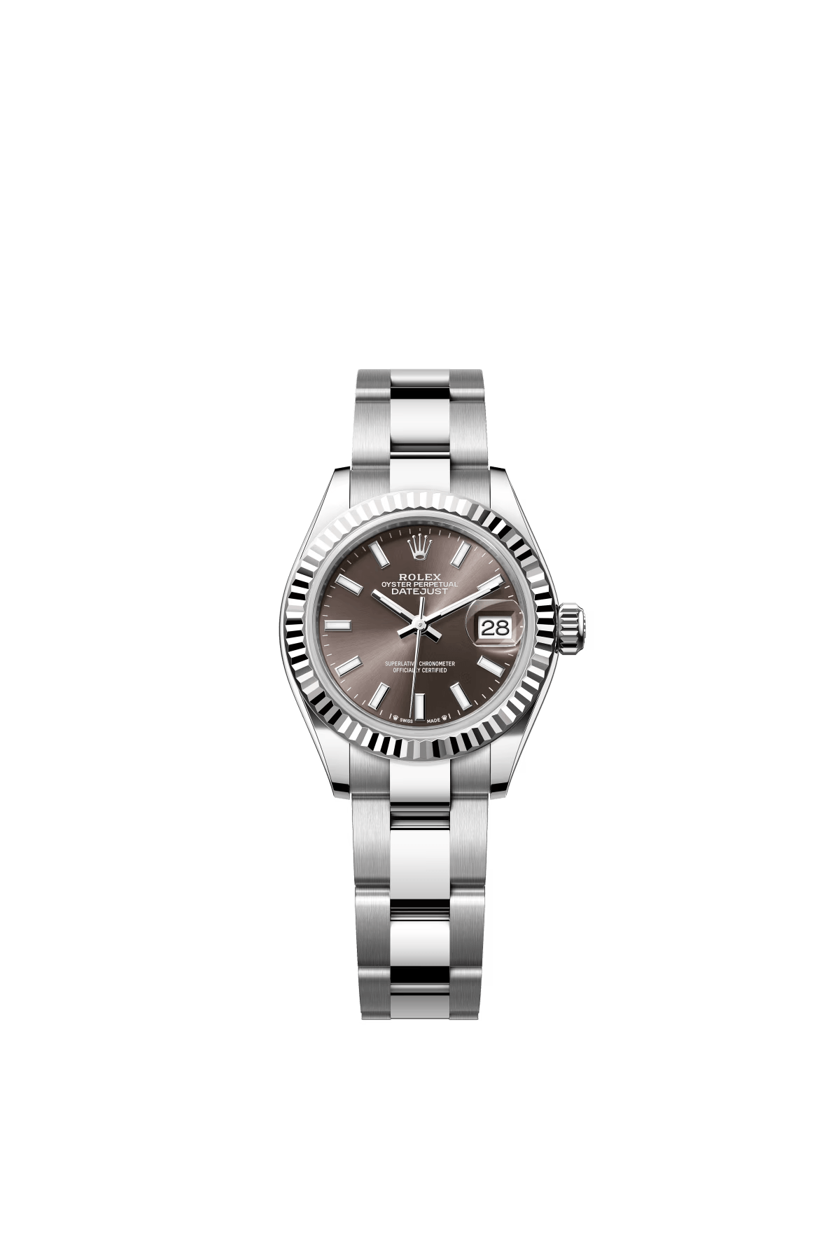 The Oyster Perpetual Lady-Datejust in white gold and Oystersteel with a dark grey dial and Oyster bracelet. -m279174-0012 28mm
