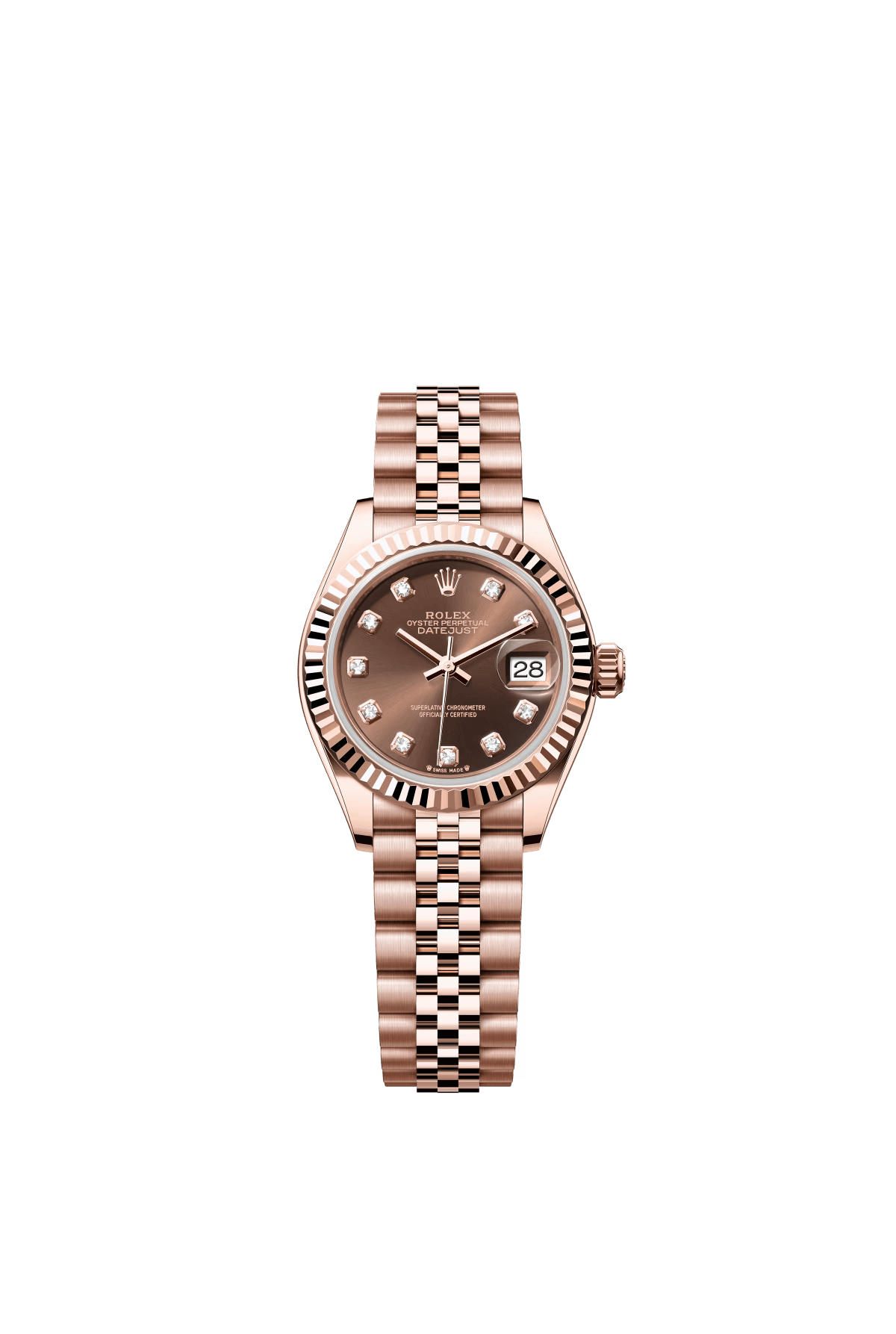 The Oyster Perpetual Lady-Datejust in 18-carat Everose gold with a chocolate-coloured diamond-set dial and a Jubilee bracelet. -m279175-0010 28mm