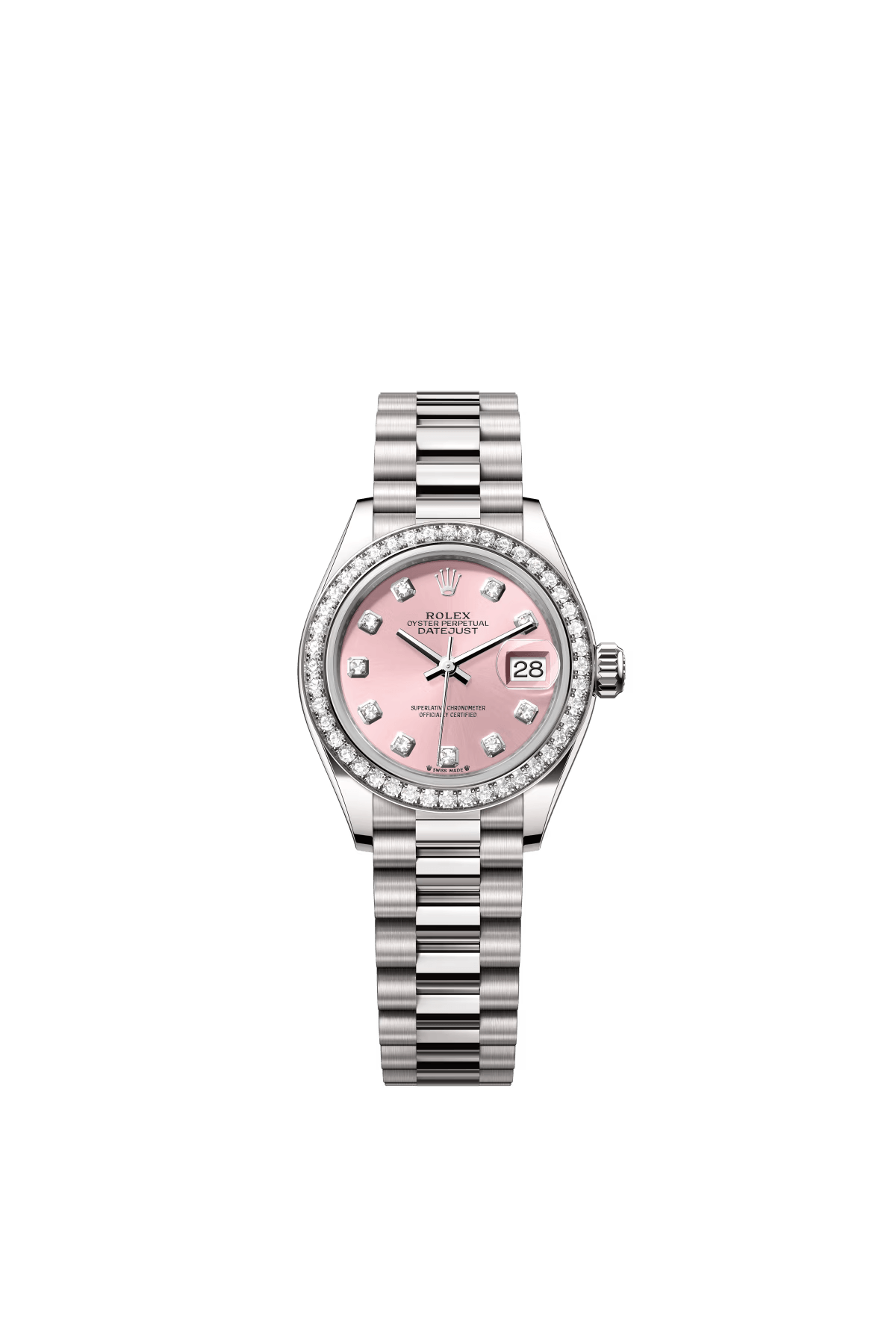 The Oyster Perpetual Lady-Datejust in 18 ct white gold with a pink diamond-set dial and President bracelet. -m279139rbr-0005 28mm