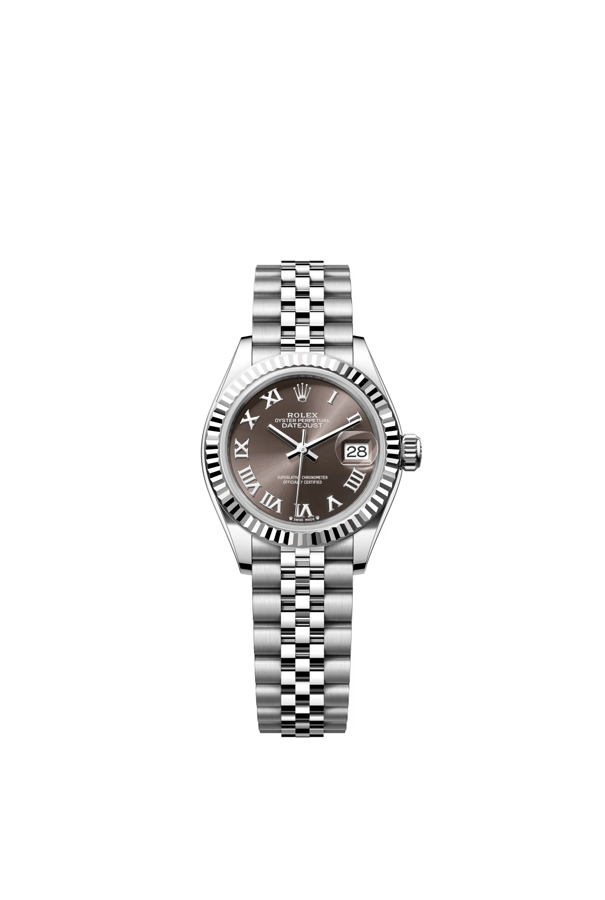 The Oyster Perpetual Lady-Datejust in white gold and Oystersteel with a dark grey dial and a Jubilee bracelet. -m279174-0013 28mm
