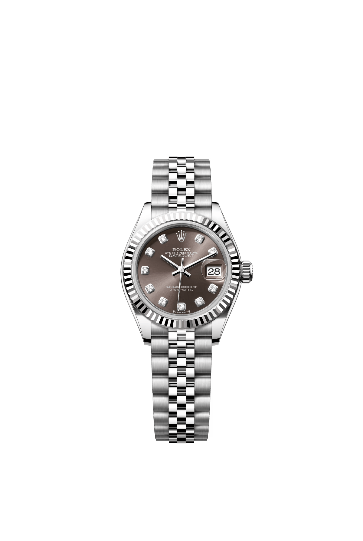 The Oyster Perpetual Lady-Datejust in white gold and Oystersteel with a diamond-set dark grey dial and a Jubilee bracelet. -m279174-0015 28mm