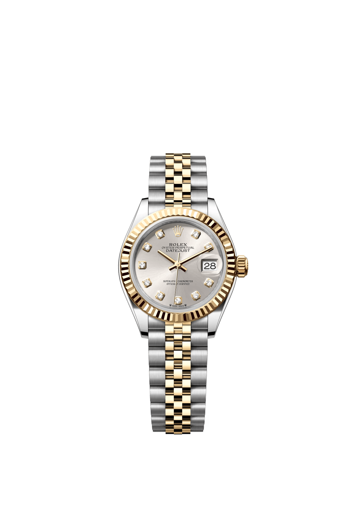 The Oyster Perpetual Lady-Datejust in yellow gold and Oystersteel with a silver-toned diamond-set dial and a Jubilee bracelet. -m279173-0007 28mm