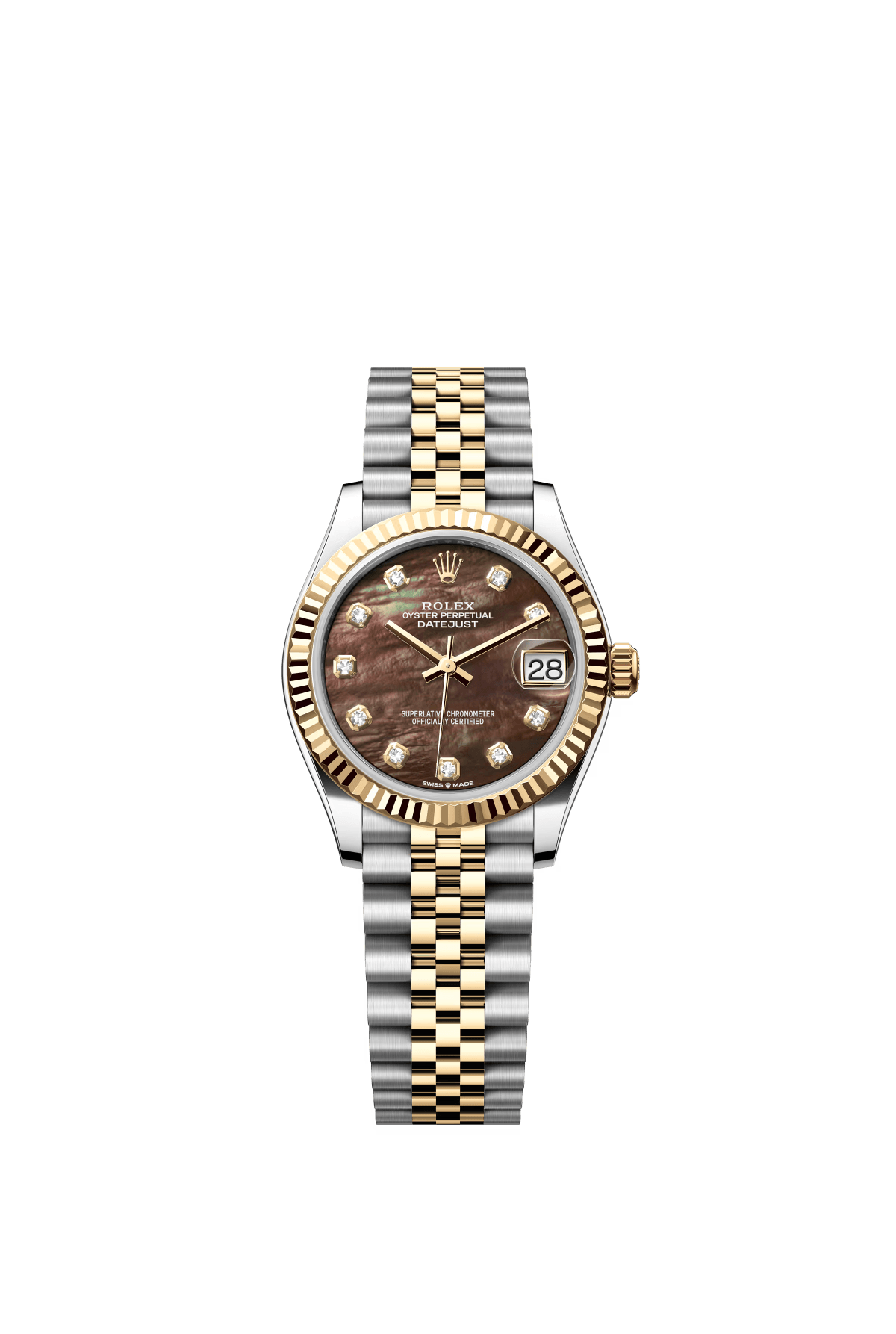 The Oyster Perpetual Datejust 31 in yellow gold and Oystersteel with a diamond-set black mother-of-pearl dial and a Jubilee bracelet. -m278273-0024