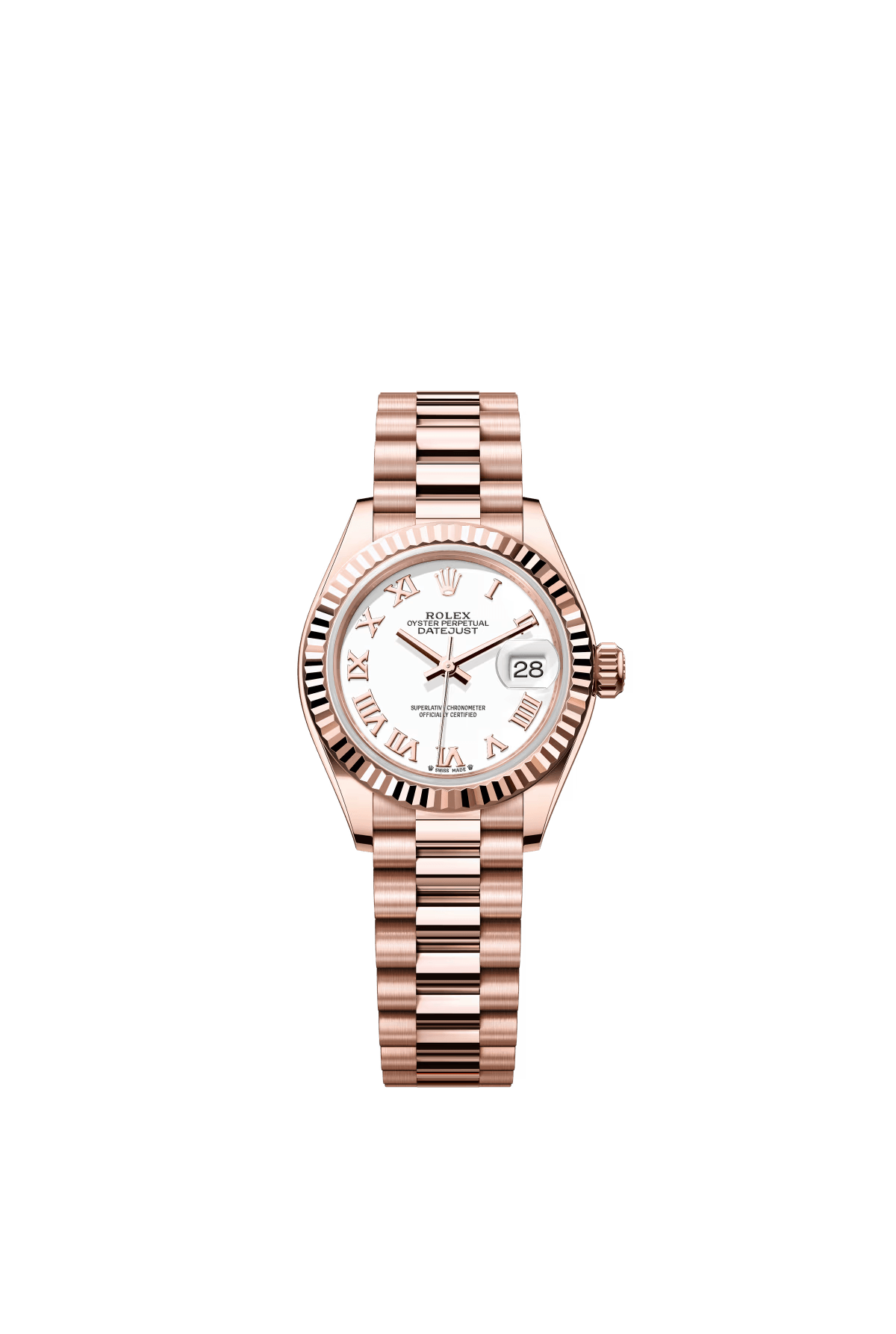 The Oyster Perpetual Lady-Datejust in 18-carat Everose gold with a white dial and President bracelet. -m279175-0021 28mm
