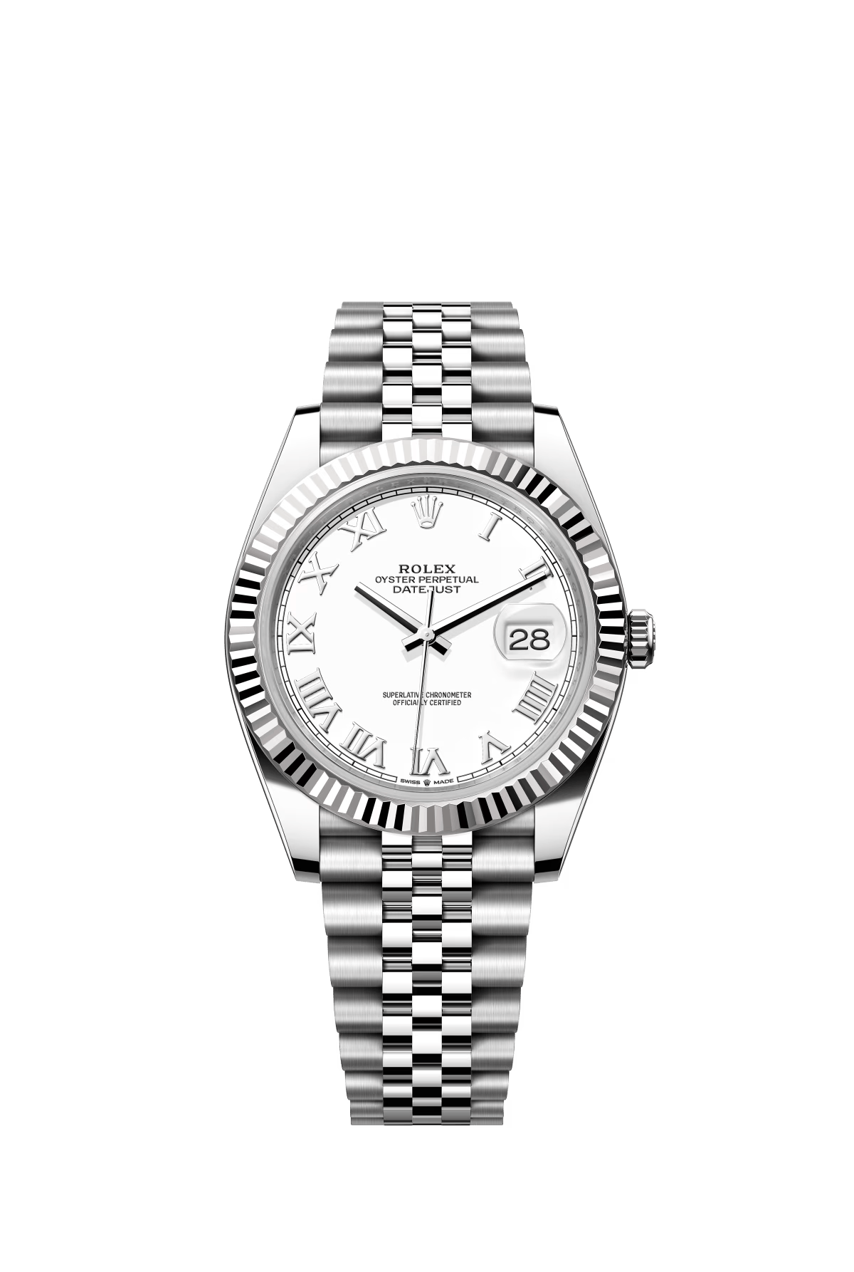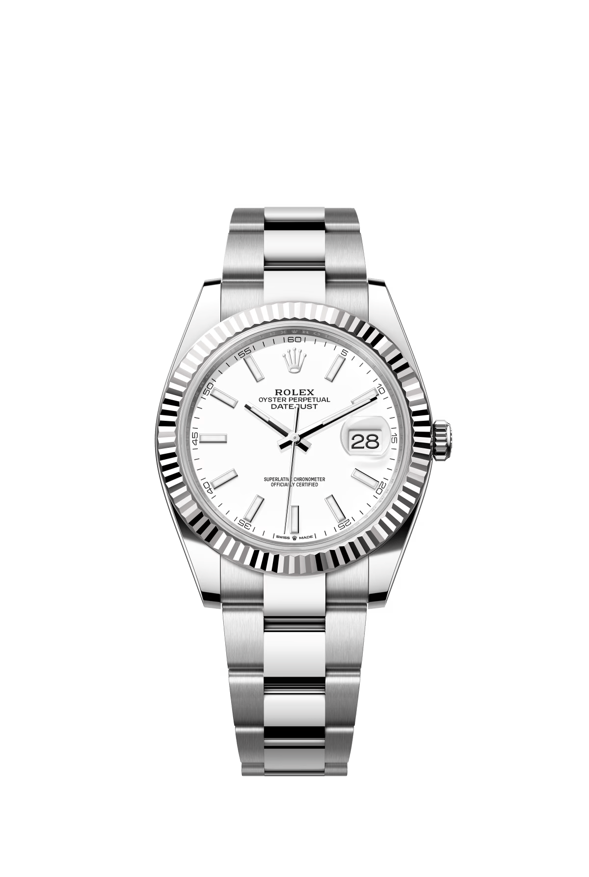 The Oyster Perpetual Datejust 41 is available in white gold and Oystersteel with a white dial and Oyster bracelet. -m126334-0009