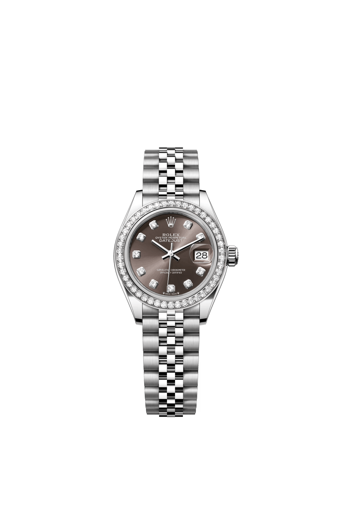 The Oyster Perpetual Lady-Datejust in white gold and Oystersteel with a diamond-set dark grey dial and a Jubilee bracelet. -m279384rbr-0017 28mm