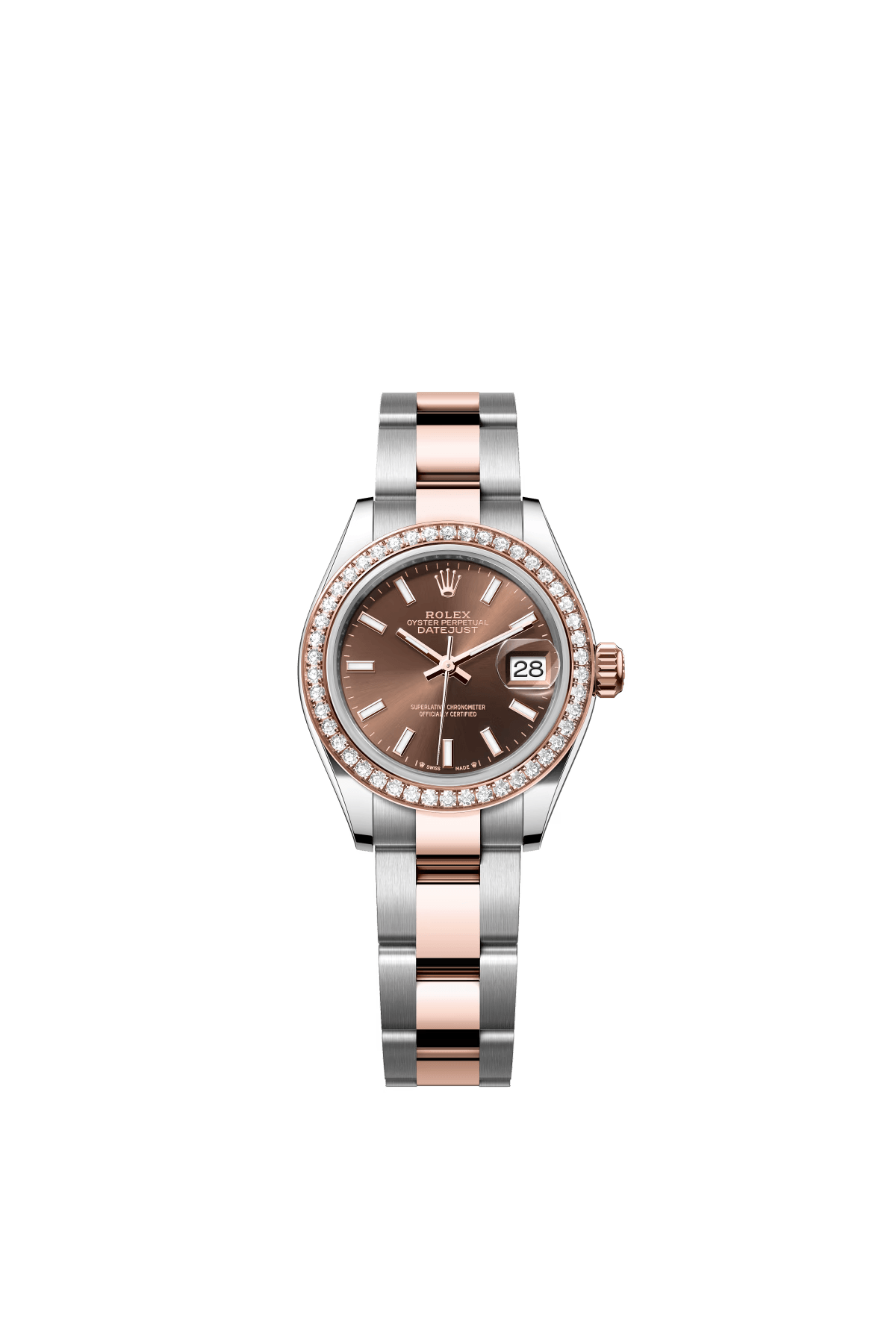The Oyster Perpetual Lady-Datejust in Everose gold and Oystersteel with a chocolate-coloured dial and an Oyster bracelet. -m279381rbr-0018 28mm