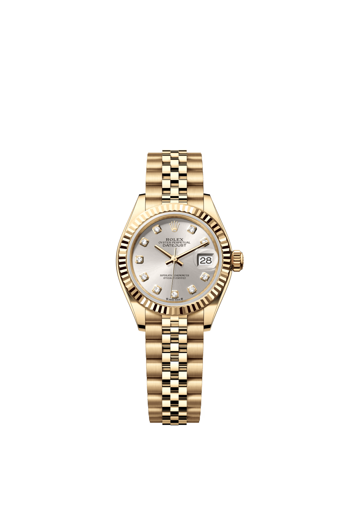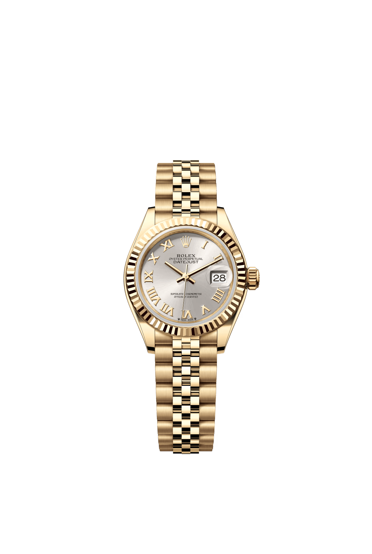 The Oyster Perpetual Lady-Datejust in 18 ct yellow gold with a silver dial and Jubilee bracelet. -m279178-0021 28mm