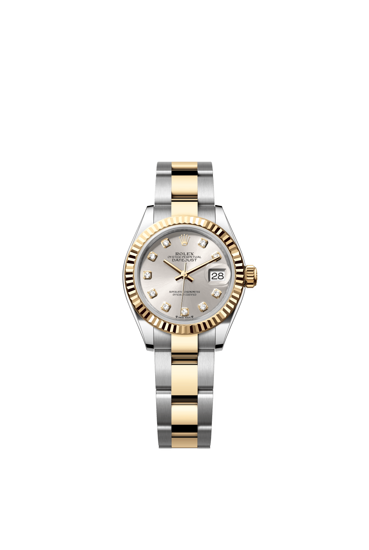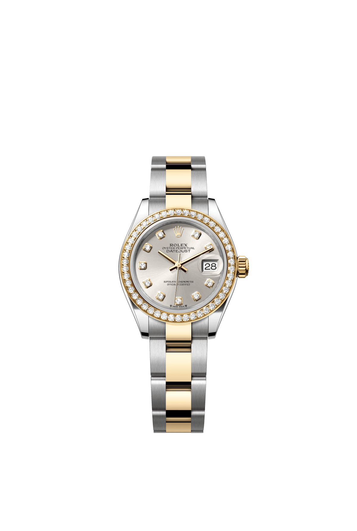 The Oyster Perpetual Lady-Datejust in yellow gold and Oystersteel with a silver-toned diamond-set dial and an Oyster bracelet. -m279173-0008 28mm