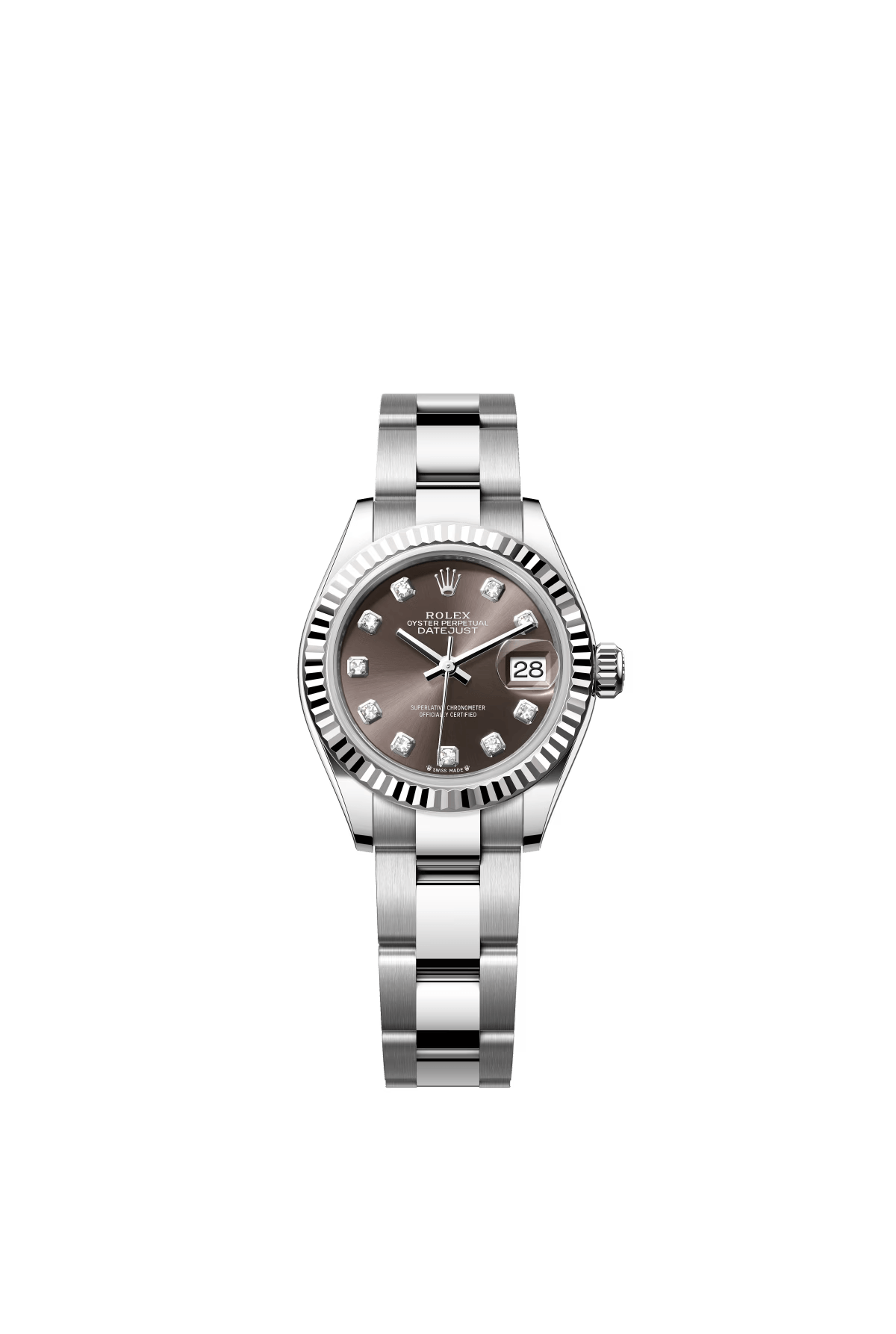 The Oyster Perpetual Lady-Datejust in white gold and Oystersteel with a diamond-set dark grey dial and an Oyster bracelet. -m279174-0016 28mm