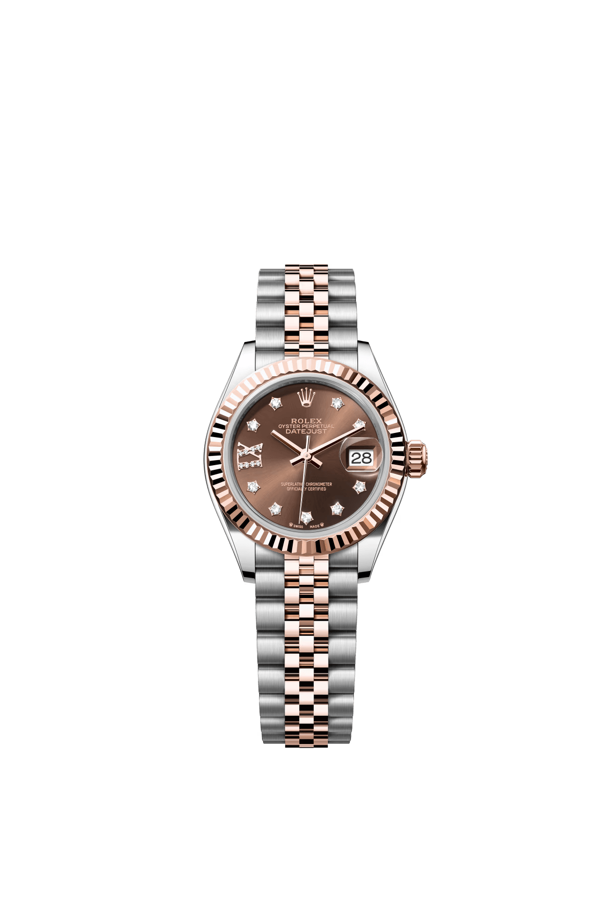The Oyster Perpetual Lady-Datejust in Everose gold and Oystersteel with a chocolate-coloured diamond-set dial and a Jubilee bracelet. -m279171-0003 28mm